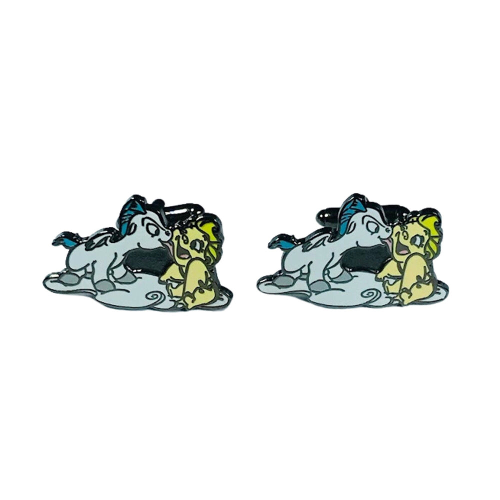 Nuestra pasión por la artesanía meticulosa se refleja en cada detalle, desde los vibrantes colores que dan vida a las alas de Pegaso hasta el resplandor angelical que ilumina el rostro del joven Zeus. Estos gemelos son más que accesorios: son talismanes que llevan el corazón de la mitología y el alma de las historias más preciadas a tu atuendo diario.
