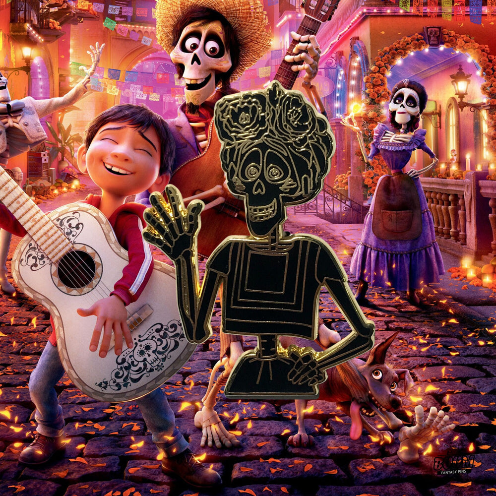 🌑 Misterio elegante: el acabado elegante de la versión negra le otorga al pin una sutil sofisticación que realza la compleja personalidad de Héctor: tanto embaucador como compañero de buen corazón.