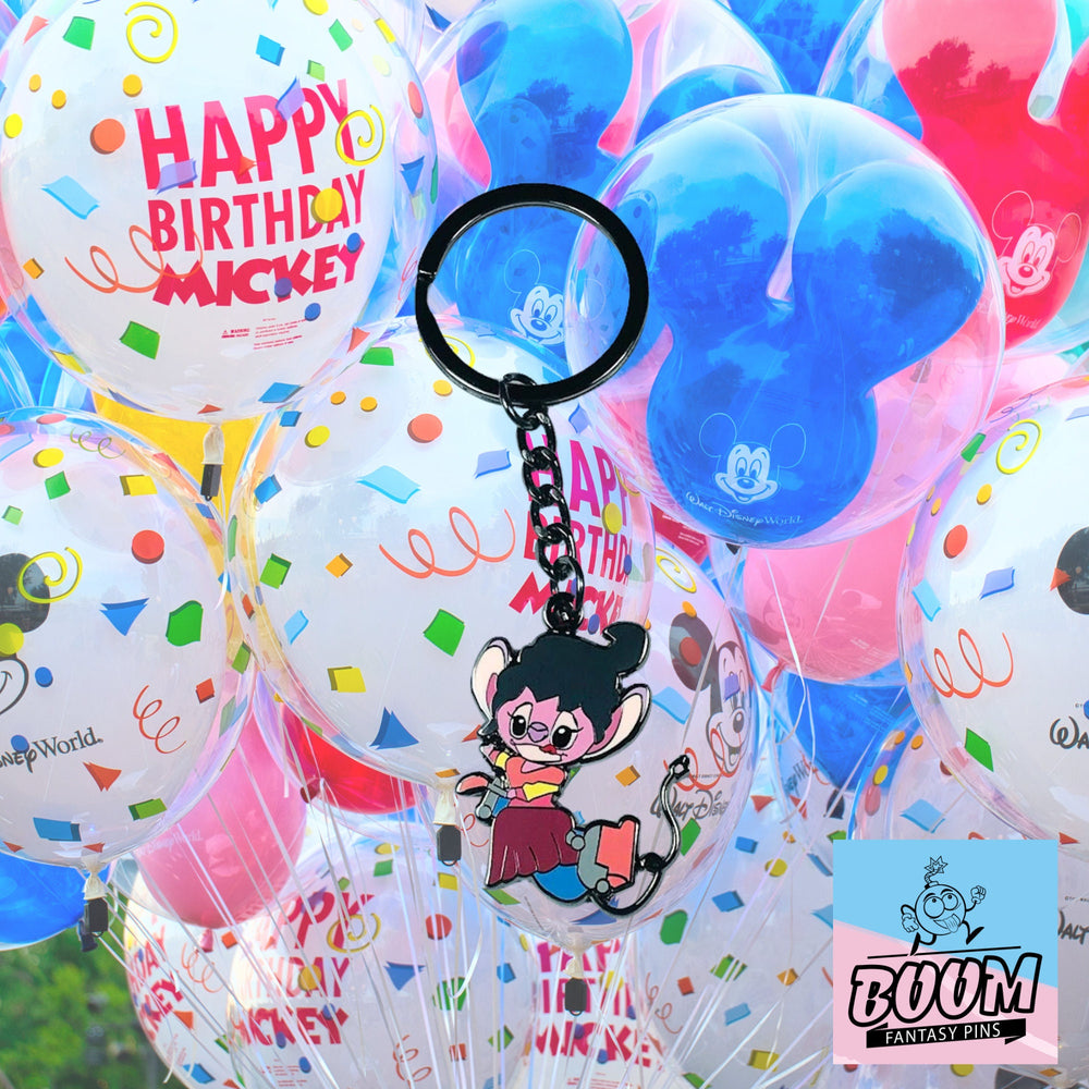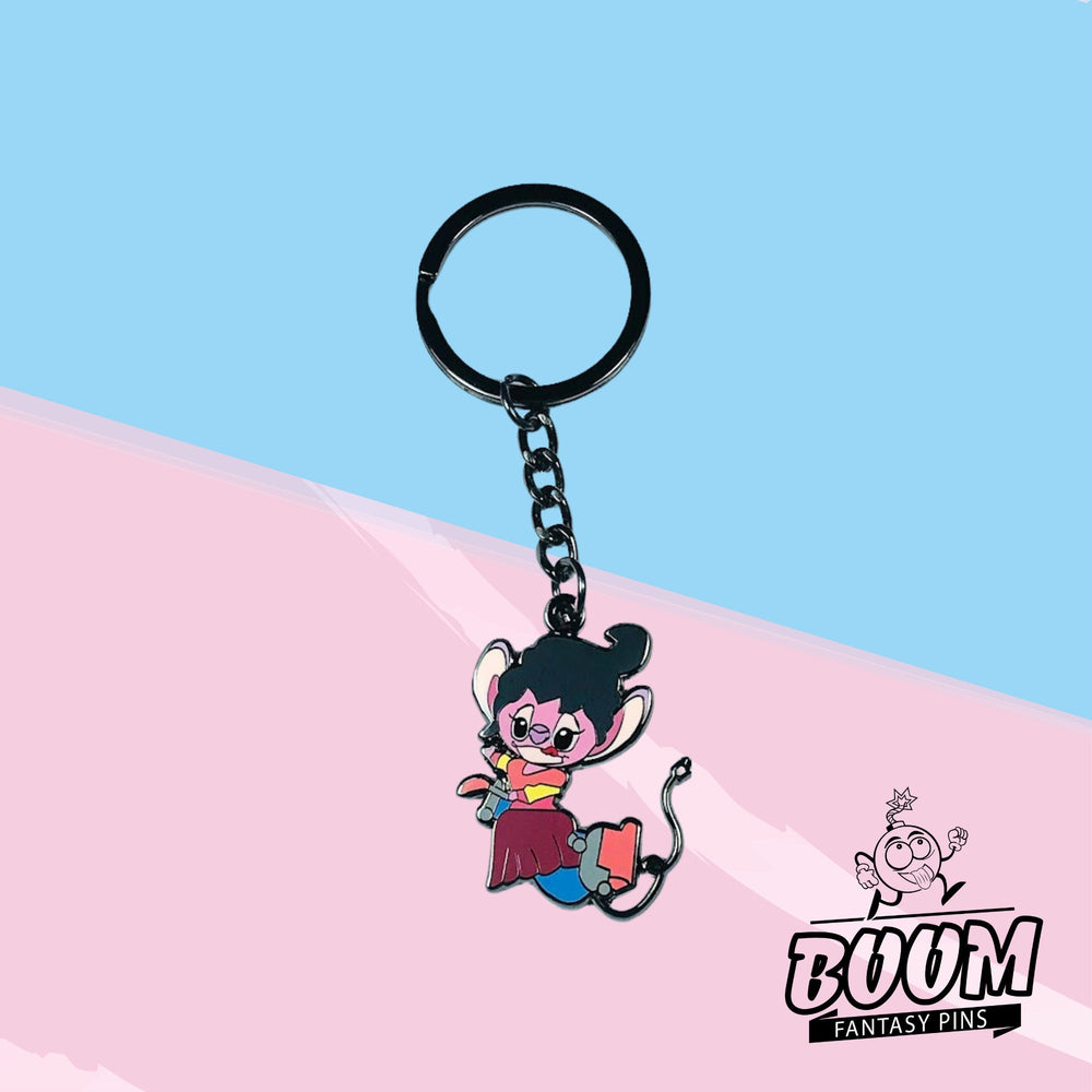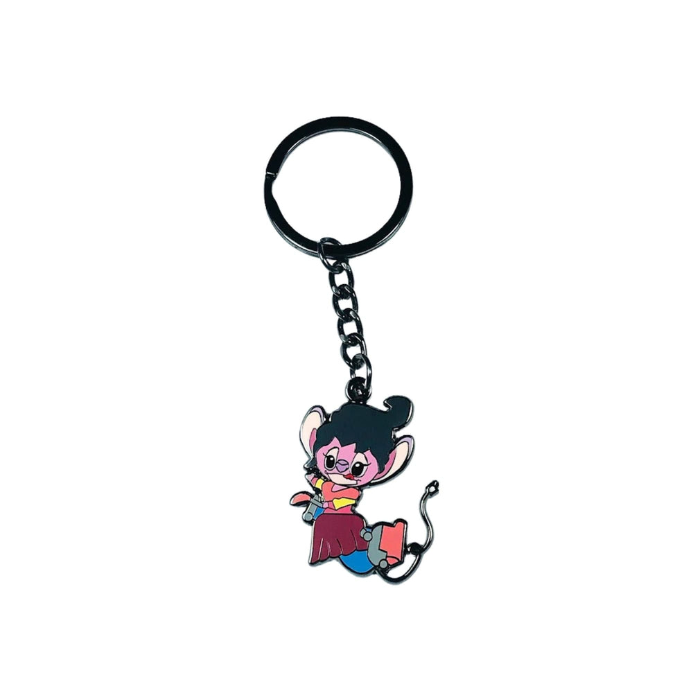 Este encantador telón de fondo se convierte en el escenario de la danza de luz y sombra de Ángel, donde cada aleteo narra una historia de redención y amistad. El llavero inmortaliza este momento, capturando la esencia misma del personaje: un faro para quienes aprecian las lecciones de amor y lealtad que se entretejen en Lilo & Stitch .