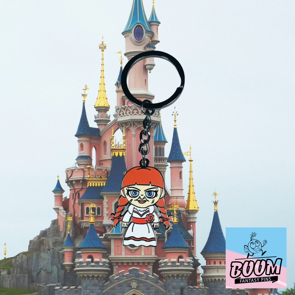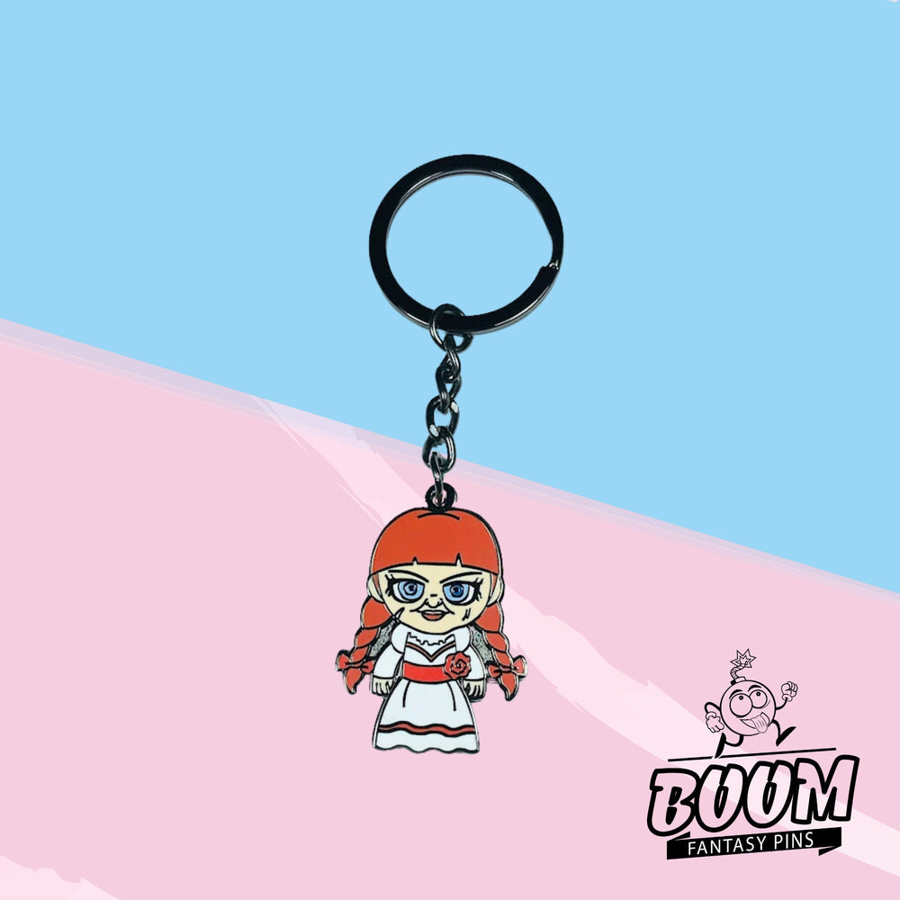 Adéntrate en los oscuros pasillos del terror cinematográfico, donde el destello de las velas proyecta sombras inquietantes y el silencio solo se rompe con el crujido de las antiguas tablas del suelo. Aquí habita Annabelle , la infame muñeca poseída, cuya inocente apariencia esconde una oscura amenaza sobrenatural. Como pieza clave de la franquicia Annabelle - Horror , este llavero evoca el aura escalofriante de la muñeca que ha atormentado sueños y desatado temores en todo el mundo.