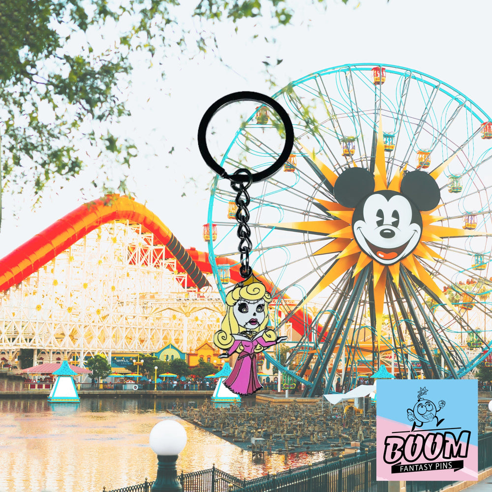 Lleva este encantador llavero de Aurora como zombi de La Bella Durmiente - Disney Fantasy cerca de tu corazón y deja que te recuerde el poder de los sueños, la belleza de la transformación y la magia que habita en cada rincón de nuestra imaginación. Dale la bienvenida a esta fascinante pieza a tu vida y a tu colección, donde la elegancia de los cuentos de hadas se fusiona con el emocionante encanto de lo desconocido, y deja que despierte la curiosidad, el asombro y una profunda conexión con las historias que nos moldean. ✨ Descubre la magia y el misterio hoy; te espera un viaje con el espíritu renovado de Aurora. 🌙👑💖
