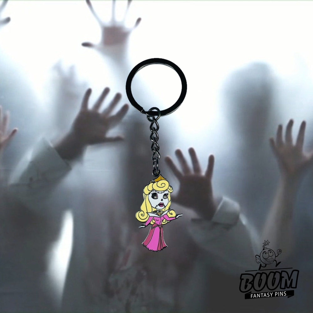 Adéntrate en los sombríos reinos de un cuento de hadas clásico renacido, donde la elegante y grácil princesa se encuentra con el inquietante encanto de los no muertos. El llavero Aurora como zombi de La Bella Durmiente - Disney Fantasy te invita a viajar más allá de lo familiar, hacia una fascinante fusión de inocencia y encanto inquietante. Imagina a la Princesa Aurora, la personificación de la belleza de los cuentos de hadas y los delicados sueños, transformada en una figura que encarna tanto la gracia etérea como la mística oscura. Su historia, apreciada durante mucho tiempo por sus temas de amor, esperanza y despertar, ahora adquiere una nueva dimensión, una donde los límites de la fantasía y el terror se entrelazan, creando una narrativa inolvidable para los fanáticos de ambos géneros.