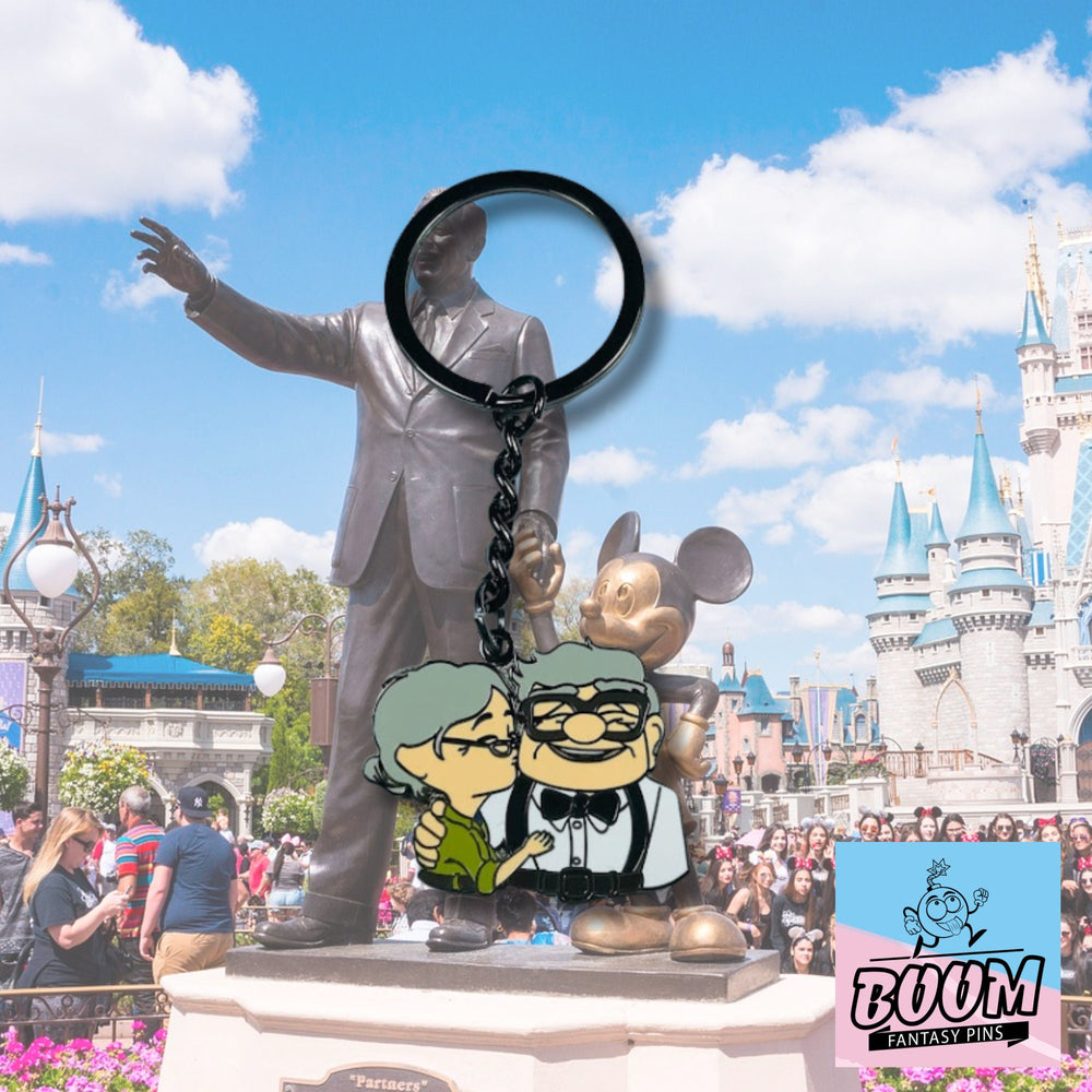 Acepta el llavero de Carl Fredricksen y Ellie Fredricksen de Up – Disney Fantasy | Llavero de pareja con forma de corazón, regalo romántico para aniversario y San Valentín, como tu talismán personal del poder perdurable del amor. Deja que te inspire valor a diario para perseguir tus sueños, honrar recuerdos preciados y celebrar la hermosa unión. Es más que un objeto de colección: es un sentido homenaje a una historia que nos recuerda que el amor nos eleva a lo más alto. ✨🔑💖