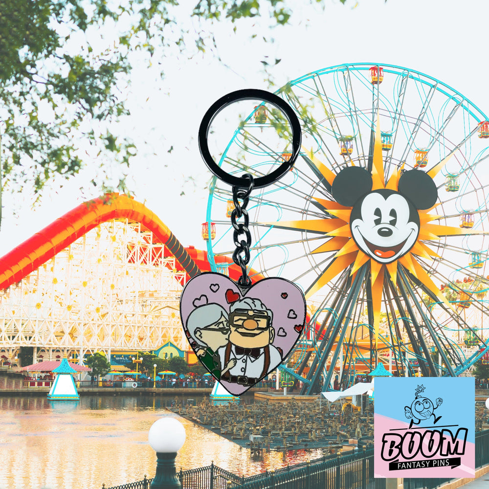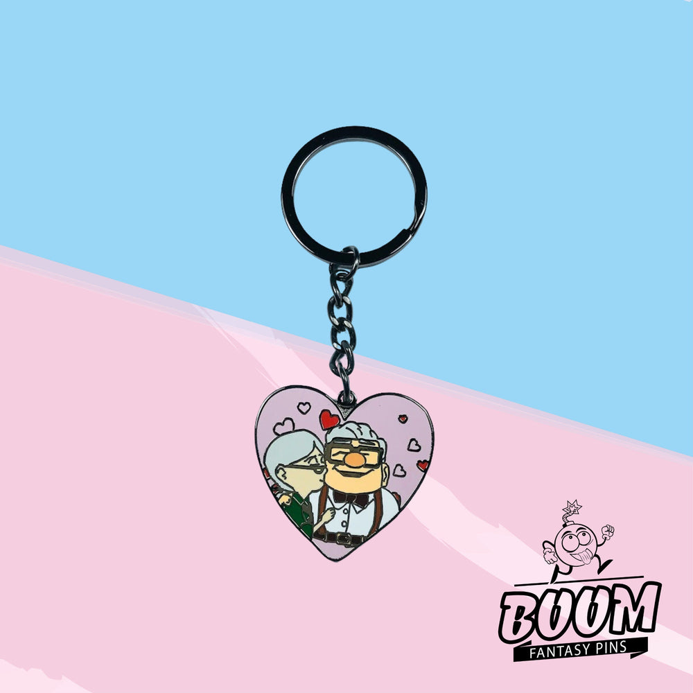 Cada detalle, desde las icónicas gafas cuadradas de Carl y su expresión brusca, suavizada por el amor, hasta la radiante sonrisa y el brillo aventurero de Ellie, está meticulosamente elaborado para evocar emociones. La forma de corazón los enmarca no solo como pareja, sino como símbolo de unidad y cariño eterno, convirtiendo el llavero en una obra de arte portátil con una profunda carga narrativa para los fans.
