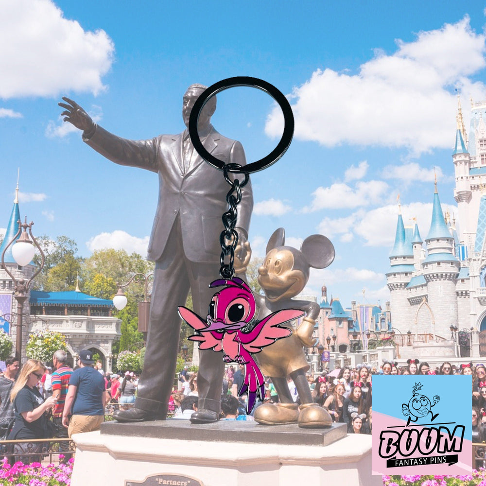 Deja volar tu imaginación hacia las soleadas costas donde Lilo y su variopinta familia comparten aventuras que irradian espíritu hawaiano. Los vibrantes colores y el entrañable encanto de Hunkahunka evocan la calidez de los atardeceres hawaianos, el brillo de las olas del mar y los inquebrantables lazos de amistad que definen esta entrañable saga. Al llevar este llavero, siente el pulso de ohana abrazándote: un susurro de que tú también perteneces a una familia más allá de las estrellas y el tiempo.