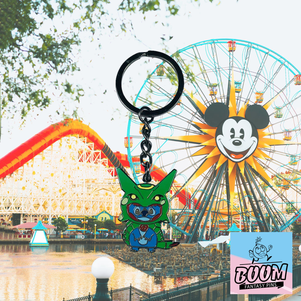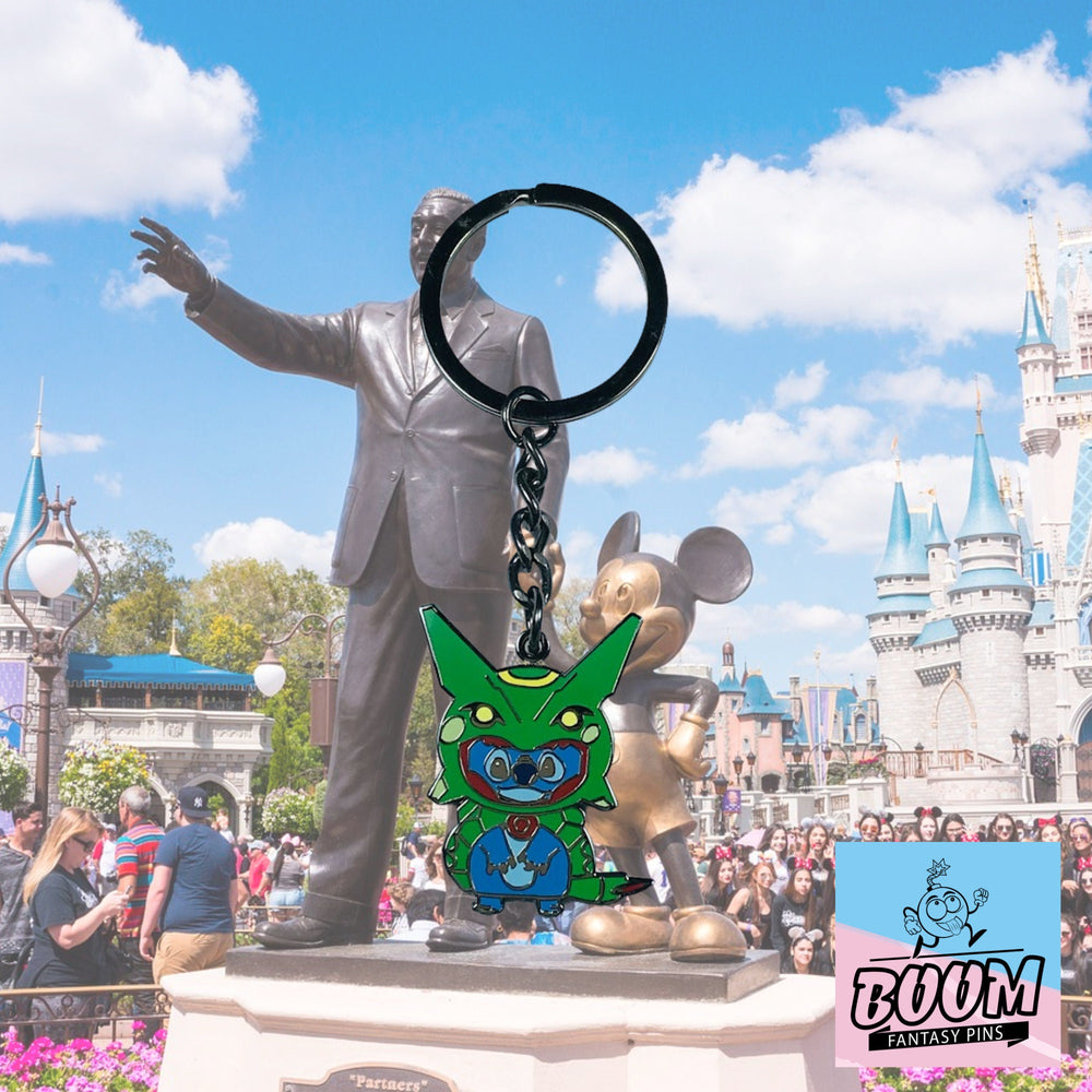 Imagina la sonrisa traviesa que ilumina el rostro de Stitch, el brillo en sus ojos que refleja su inquebrantable curiosidad y el azul eléctrico de su pelaje brillando como las olas del Pacífico. Esto no es solo un llavero: es la celebración de una historia que nos recuerda a todos por qué la familia importa.