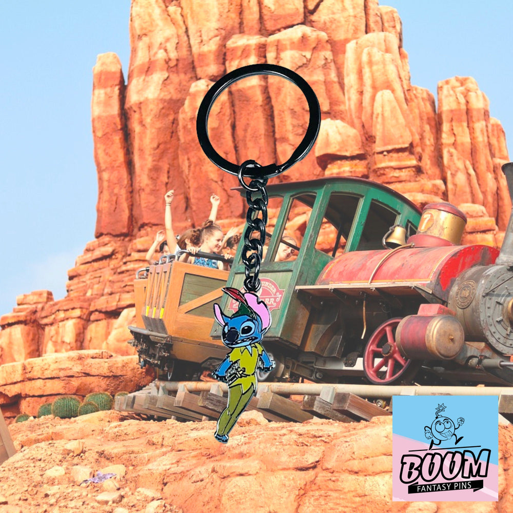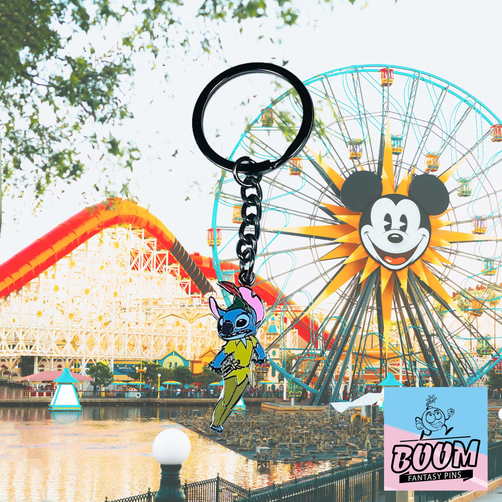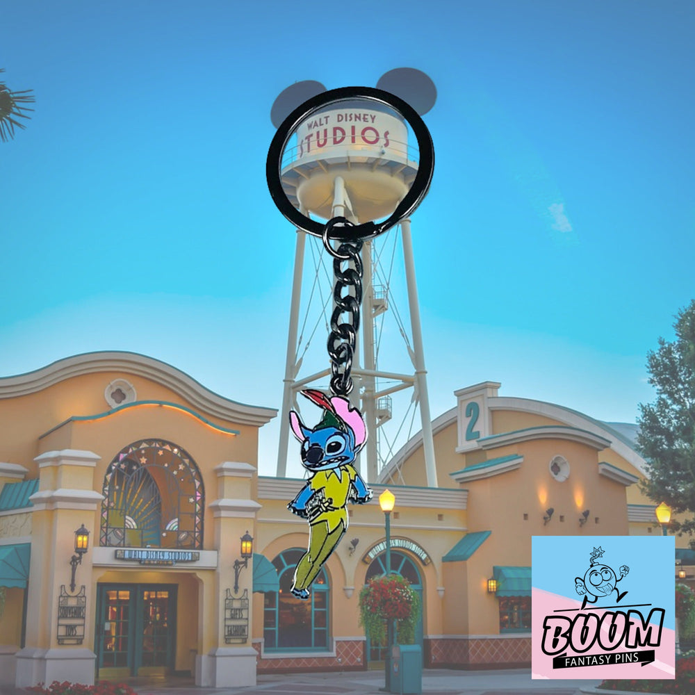 Deja que el llavero – Experimento 626 Stitch como Peter Pan de Lilo y Stitch – Disney Fantasy | Accesorio coleccionable con diseño Ohana de extraterrestre hawaiano te acompañe en la gran aventura de la vida: una chispa de aloha en tu bolsillo, un susurro de la promesa del País de Nunca Jamás en tus llaves. Lleva la