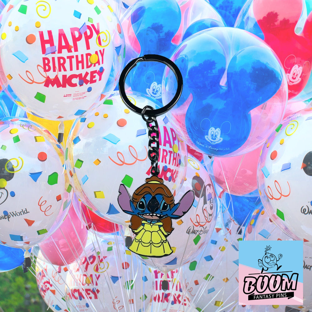 El llavero no es solo un accesorio, sino un portal a una historia donde se entrelazan la amistad, la fantasía y la devoción familiar. Simboliza la valentía de liberarse de las expectativas y la alegría que se encuentra en el tierno abrazo de Ohana. Con cada mirada curiosa de Stitch y cada giro del vestido de Bella, te invitamos a recordar que el amor trasciende las galaxias y que la capacidad del corazón para crecer no tiene límites.