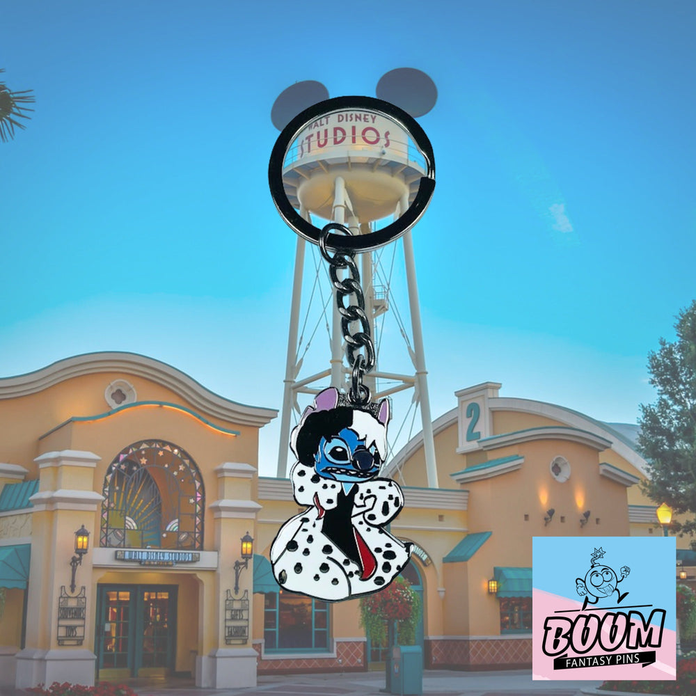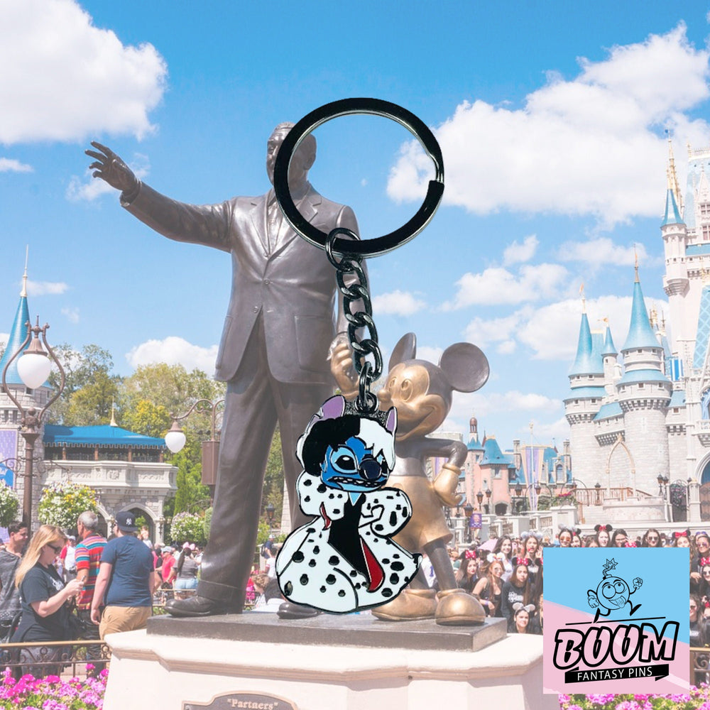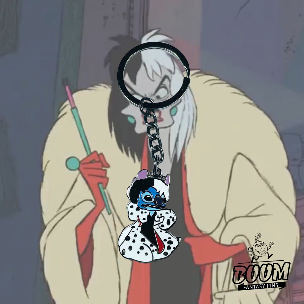Ahora, imagina capturar esta entrañable narrativa en una forma tan dinámica y encantadora como el propio Stitch: un homenaje esculpido que honra su esencia juguetona y su férrea lealtad. En Boom Fantasy Pins, canalizamos esta pasión en cada creación, creando accesorios que son más que simples coleccionables; son portales a las historias que nos definen. El llavero Experiment 626 Stitch de Lilo & Stitch – Disney Fantasy | Accesorio coleccionable Stitch como Cruella De Vil para regalo Ohana de Disney fusiona dos mundos icónicos en una deslumbrante pieza. Aquí, el espíritu travieso de Stitch se entrelaza con el estilo audaz de Cruella De Vil, creando una obra maestra que irradia fantasía y rebeldía audaz.