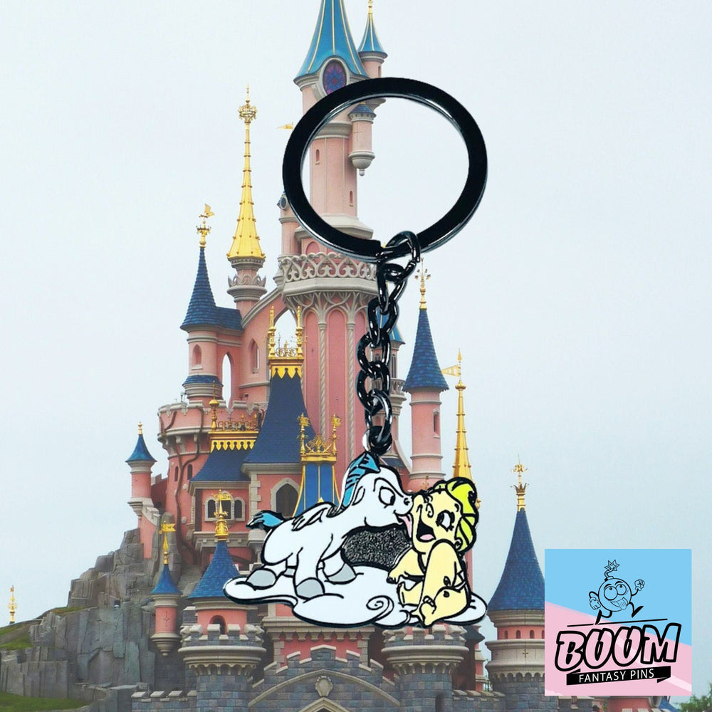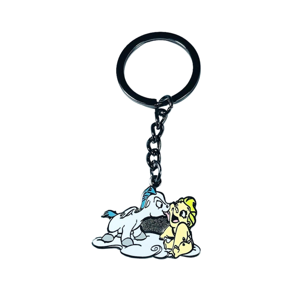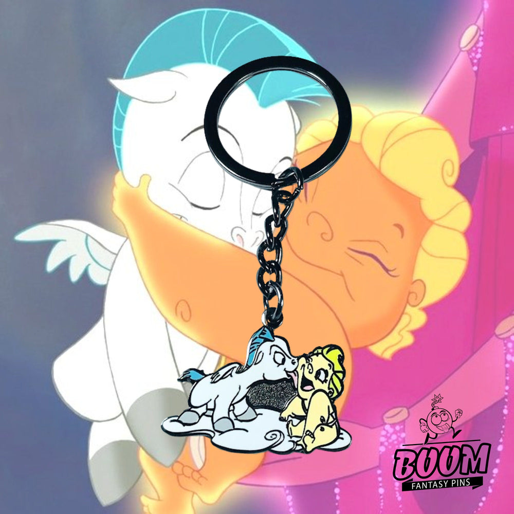 Siente el pulso del Olimpo mientras los colores pintados a mano evocan la vitalidad del clásico animado, adorado por millones. No es un simple accesorio; es un portal a las hazañas heroicas que forjaron mundos. Los tonos dorados de la fuerza de Hércules, los brillantes blancos y azules de las alas de Pegaso, capturados con meticuloso detalle, invitan a los fans a abrazar el espíritu de aventura y lealtad. El llavero irradia la energía de esas escenas inolvidables: la música vibrante, las persecuciones trepidantes, las declaraciones de amistad que definen el alma de esta historia atemporal.