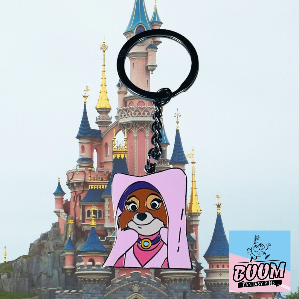 Su inquebrantable dedicación a la justicia ilumina las sombras proyectadas por el reinado del Sheriff de Nottingham, y con cada acto de bondad y valentía, se convierte en el alma de una rebelión impulsada por la esperanza. A través de sus ojos, presenciamos el poder silencioso de la resiliencia: cómo el amor y la convicción pueden impulsar el cambio incluso en los momentos más difíciles. Esta es la esencia capturada en nuestro llavero: Lady Marian de Robin Hood – Disney Fantasy | Accesorio de la elegante nobleza inspirado en la clásica aventura animada .