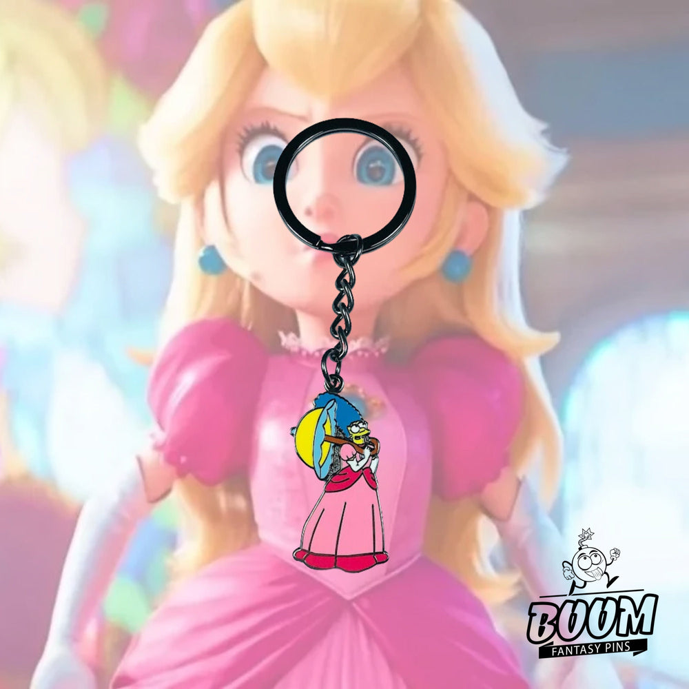 🔥 ¡No esperes! Agrega este exquisito llavero a tu colección hoy y celebra el amor eterno y el espíritu imaginativo que Marge Simpson y la Princesa Peach encarnan juntas. 🌟