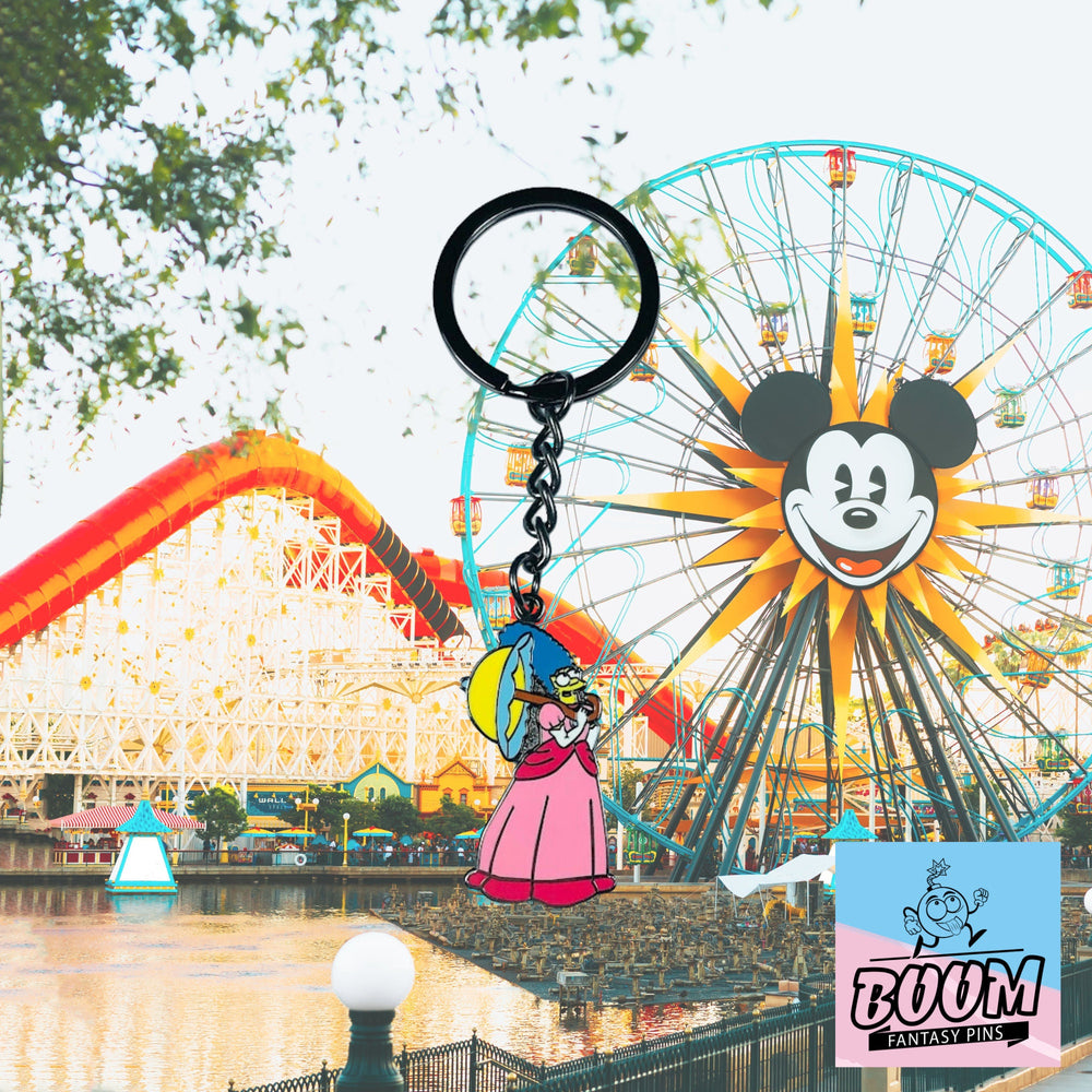 Lleva el llavero – Marge Simpson de Los Simpson – Disney Fantasy | Accesorio coleccionable Crossover de Marge Simpson y la Princesa Peach. Regalo hecho a mano no solo como accesorio, sino como un susurro de amor, valentía e imaginación en la palma de tu mano. Deja que sus vibrantes tonos y siluetas icónicas te recuerden el poder de la bondad y la magia que florece cuando los mundos chocan. Esta pieza celebra el espíritu perdurable que todos llevamos dentro: la madre, la princesa, la heroína con una fuerza silenciosa.