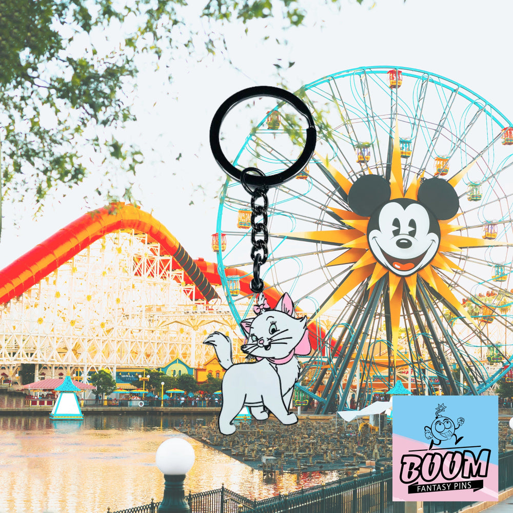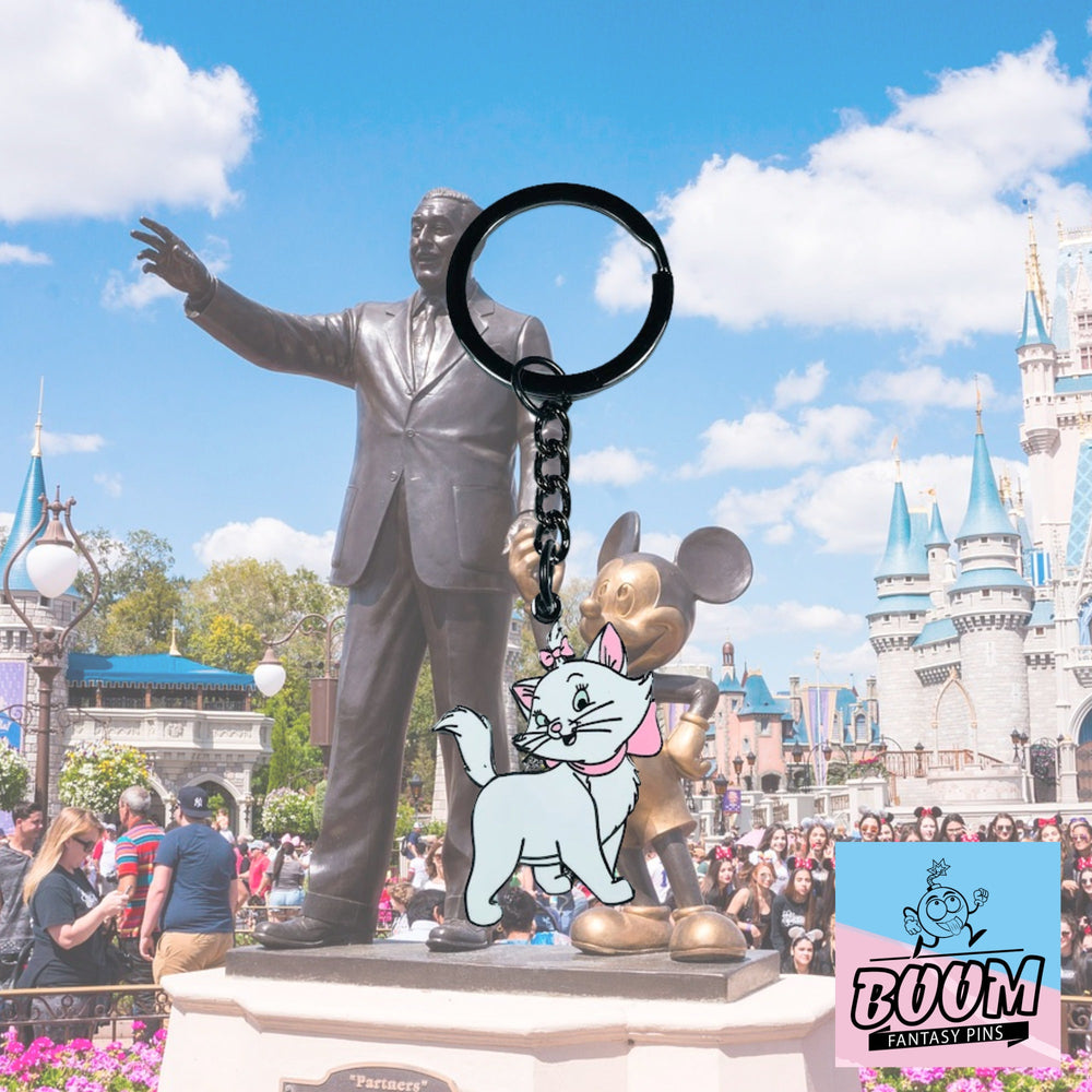 - 🌸 Perfección en la paleta de colores pastel : Los tonos suaves evocan la delicada belleza de la animación clásica, evocando nostalgia y calidez. Esta paleta de colores complementa el pelaje blanco de Marie y realza el atractivo estético del llavero, haciéndolo perfecto para los fans del arte clásico de Disney.