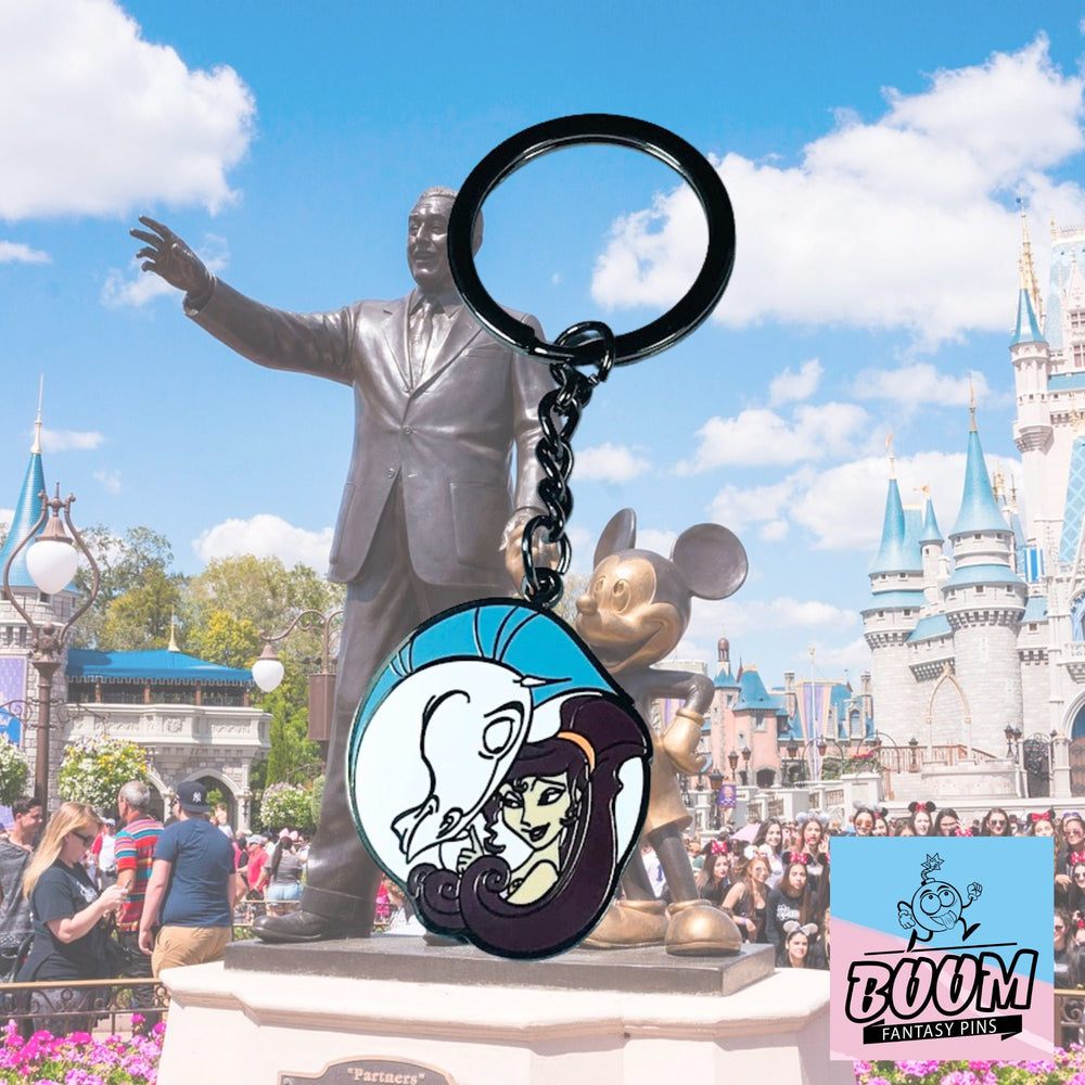 Reviva el pulso de la aventura con cada mirada a este exquisito llavero: Megara y Pegaso de Hércules - Disney Fantasy | Accesorios de héroes míticos, regalo coleccionable para entusiastas de la mitología griega . Captura la dinámica interacción de dos figuras icónicas: la postura serena y juguetona de Megara, coronada con un destello de determinación, y Pegaso en pleno vuelo, personificando la maravilla mítica y el espíritu inagotable.