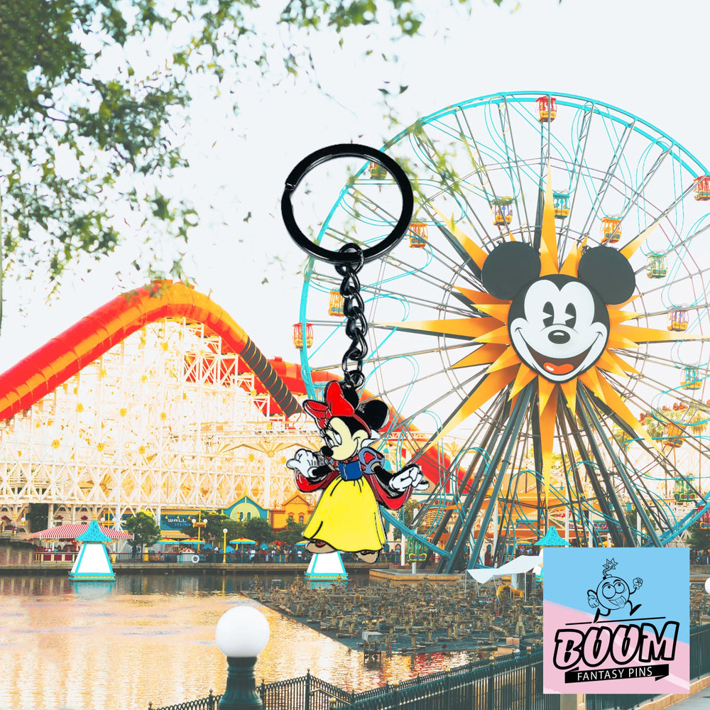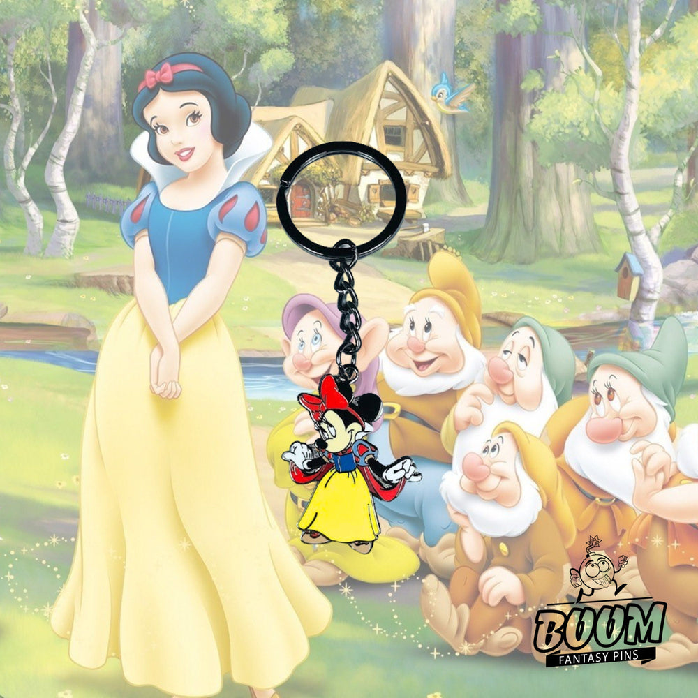 Imagina el brillo de una manzana roja 🍎, símbolo de la tentación, el misterio y la agridulce danza entre el peligro y el descubrimiento que define el cuento de Blancanieves, ahora entrelazada con la energía alegre de la alegre reverencia y la postura serena de Minnie. Este llavero captura no solo un personaje, sino un sentimiento: una celebración radiante de alegre anticipación, que evoca escenas clásicas donde la magia se derrama con naturalidad en la vida cotidiana, bañando cada cuadro con un brillo dorado de maravilla narrativa.