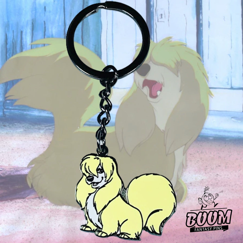 Tesoro nostálgico : reaviva la alegría de tu primer encuentro con La dama y el vagabundo , ya que este llavero recupera la calidez y la magia de la infancia con cada toque.