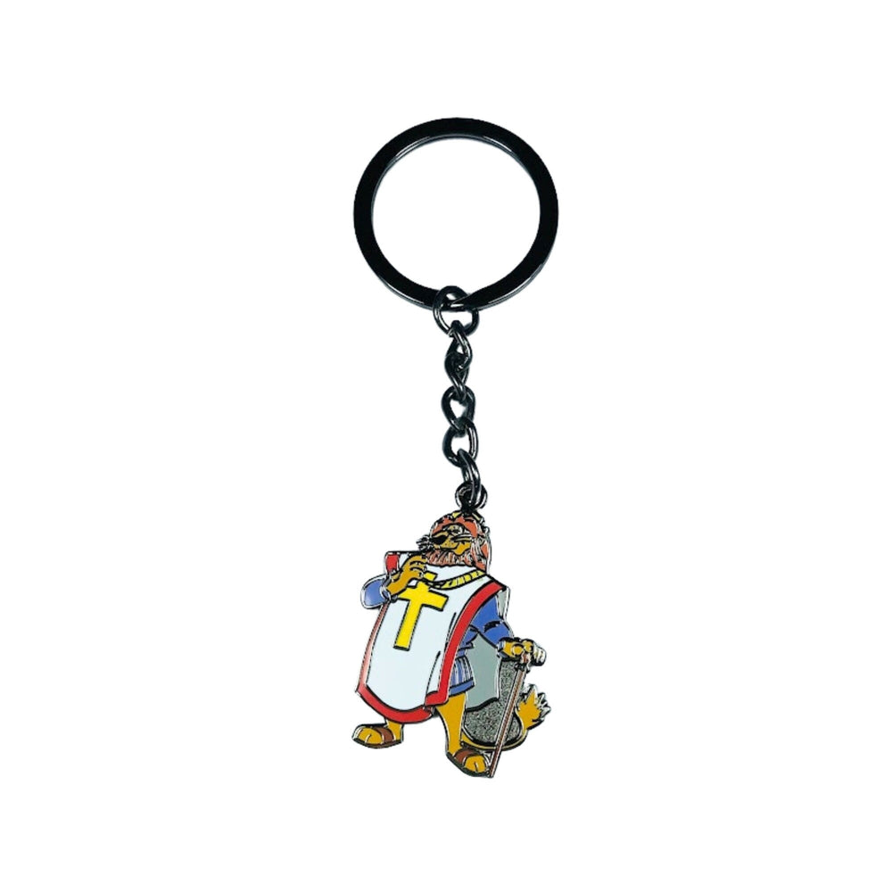 Imagina la escena donde el temperamento del príncipe Juan estalla en una rabieta real, el castillo se estremece con sus vehementes proclamaciones, su búsqueda de legitimidad se ve ensombrecida por una cómica desgracia. Este llavero captura esa esencia —la sutil danza de la amenaza y la risa— como si el mismísimo zorro estuviera posado en la palma de tu mano, listo para conspirar de nuevo o compartir una sonrisa traviesa. Los vibrantes dorados y brillantes naranjas relucen, evocando el destello de las antorchas en los pasillos de piedra y el espíritu inquieto de un gobernante que, a pesar de sus defectos, sigue siendo una fuerza cautivadora dentro de la leyenda.