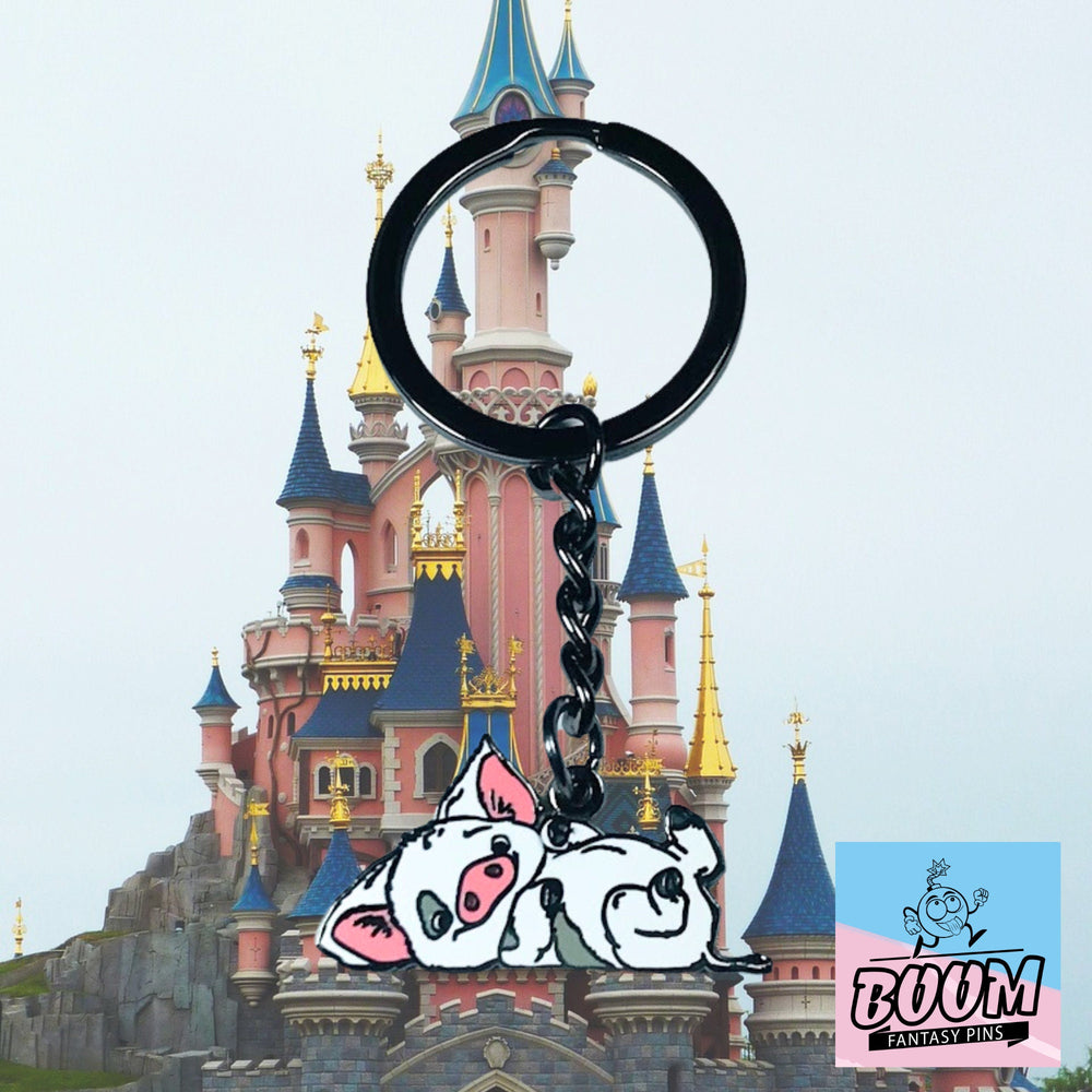 Al sostener este llavero, imagina la suave brisa del océano y el rítmico arrullo de la marea que mece a Motunui. Imagina las alegres travesuras de Pua, su rápido hocico y su encantador trote, símbolo de apoyo incondicional ante la adversidad. Este accesorio no solo adorna tus llaves, sino que transmite la resonancia emocional de un viaje que celebra la valentía, la fe y la fuerza imperecedera de la amistad.
