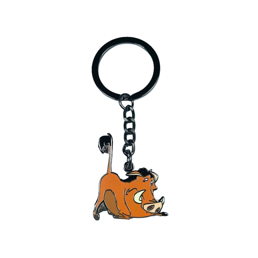 Cada detalle de este diseño rinde homenaje a la icónica presencia de Pumba, desde su postura juguetona que captura sus travesuras desenfadadas hasta las sutiles expresiones que reflejan los momentos conmovedores que comparte con Simba y Timón. No es solo un llavero; es una vívida celebración de un personaje que nos enseña el verdadero significado de la lealtad y la alegría.