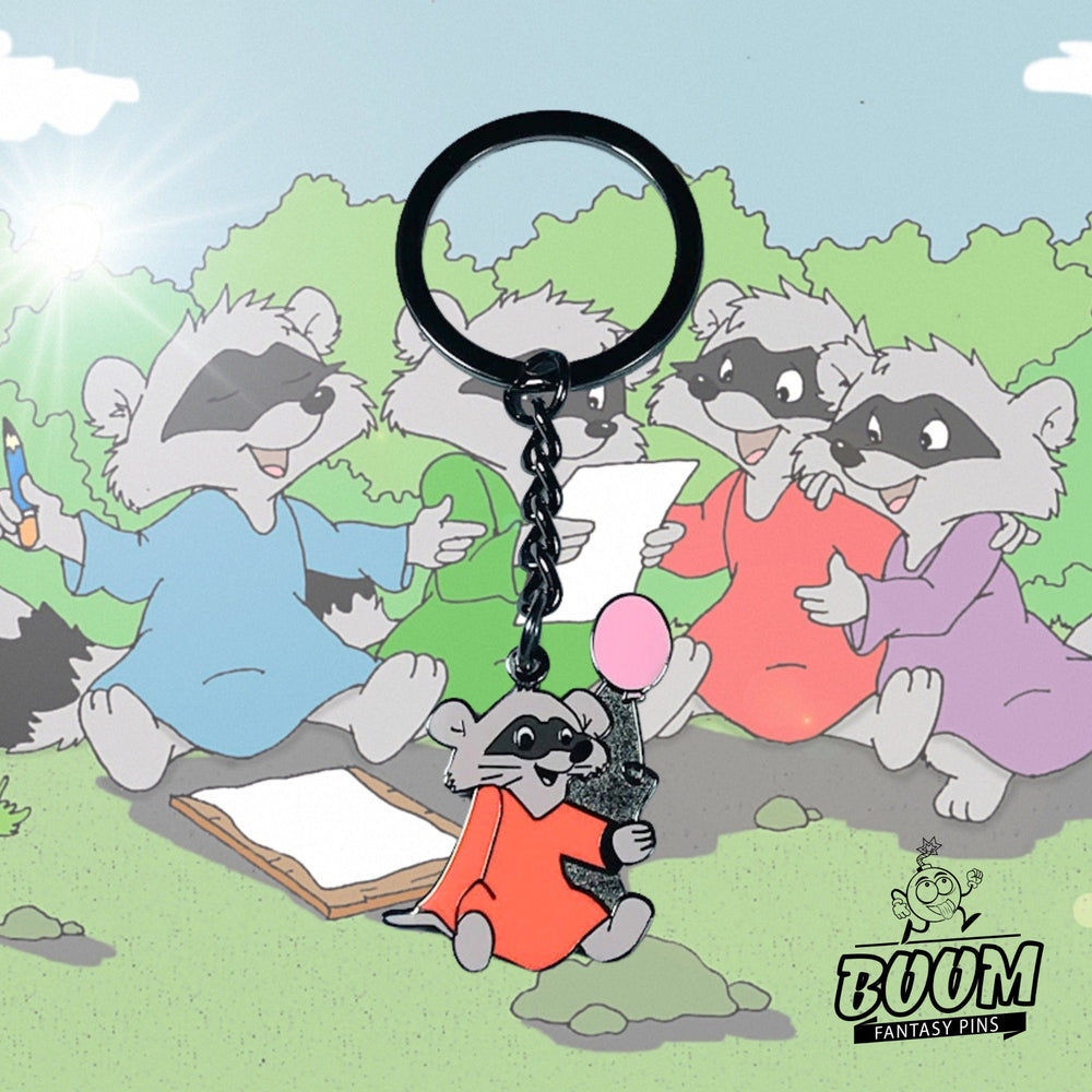 La creación de este llavero es una obra de amor, que combina la meticulosa artesanía con la visión creativa. Cada detalle, desde los ojos brillantes del mapache hasta la textura de su gorro emplumado, refleja la dedicación a capturar la personalidad y la historia. La combinación de tonos vibrantes y sutiles sombreados le aporta dimensión y vida, convirtiéndolo no solo en un llavero, sino en una obra maestra en miniatura. Inspirada en la rica tradición de Robin Hood y la gracia natural de los mapaches, esta pieza es un testimonio de la habilidad artesanal y la devoción de los aficionados.