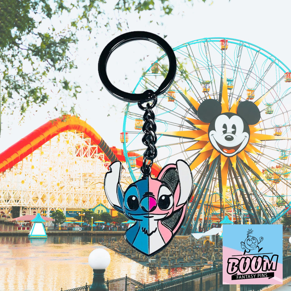 - Vibrante y llamativo : el sorprendente contraste entre el azul de Stitch y el rosa de Angel garantiza que este llavero se destaque como una pieza destacada en cualquier colección.