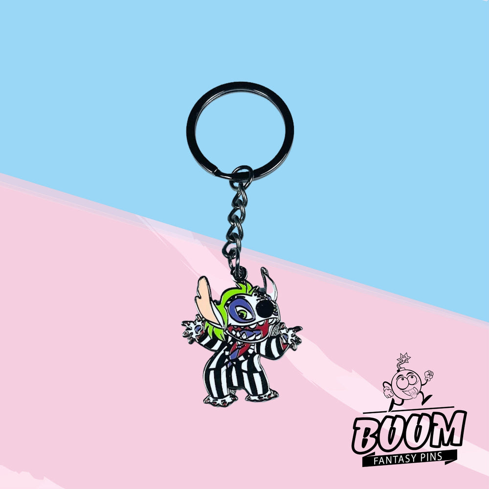 Conexión con los fans: Para los fans de ambos universos, este llavero sirve como un portal nostálgico a momentos cinematográficos preciados. Revive recuerdos del humor cautivador de Beetlejuice y el encanto caótico de Stitch, invitando a los fans a llevar un trocito de su pasión a donde quiera que vayan.