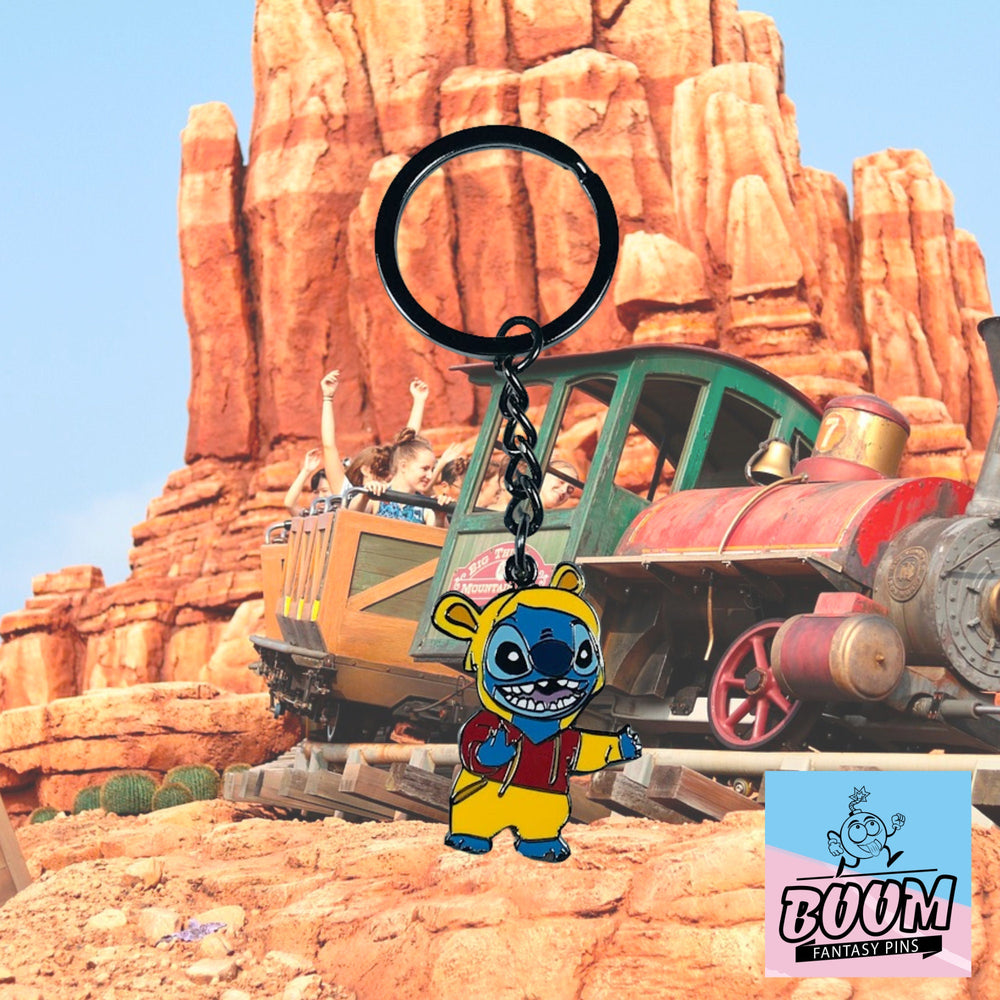 Con sus vívidos detalles, desde las distintivas orejas de Stitch que sobresalen de la capucha de Pooh hasta la serena sonrisa que insinúa una paz recién encontrada, este accesorio se convierte en un recuerdo tangible de la amistad interdimensional. Refleja la lección de que la familia se elige a través del amor y la aceptación, no limitada por el origen ni la forma. Lleva este llavero como recordatorio diario de que incluso los corazones más salvajes pueden encontrar su dulce hogar.