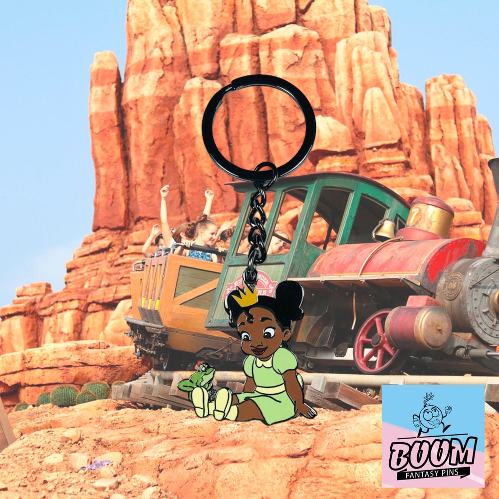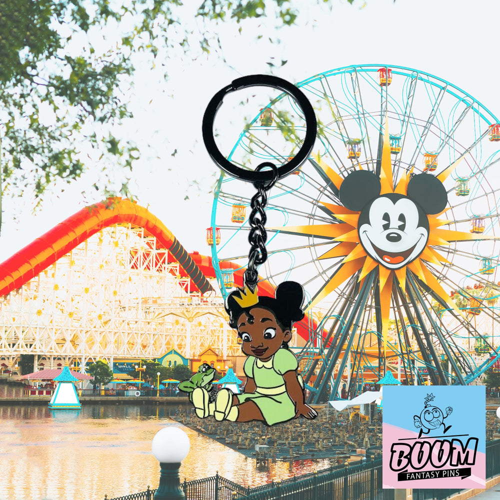 En Boom Fantasy Pins, ponemos pasión y arte en cada creación, creando tesoros para fans que atesoran las historias que forjan sus corazones. Este llavero, pintado a mano, rinde homenaje al espíritu de Tiana y su caprichosa amiga, celebrando la magia, el romance y la determinación que definen su camino.