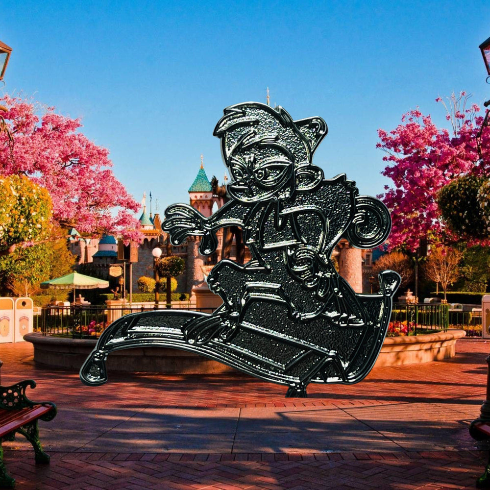 - Diseño vibrante: Presentado en tonos ricos e iluminados por el sol que reflejan las calles doradas de Agrabah, el pin estalla de energía y color, encarnando la atmósfera animada del amado clásico.
