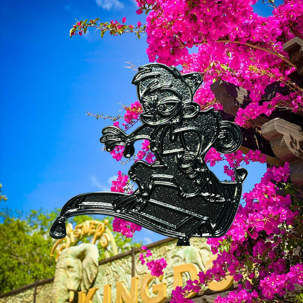 Trasciende la pantalla y sumérgete en el vibrante ambiente de los bulliciosos mercados y los palacios dorados de Agrabah. Siente el calor del sol del desierto, el aroma de las especias en el aire y el susurro de antiguos encantamientos mientras abrazas a Abu. Esta sección ofrece un retrato inmersivo del mundo que habita Abu, revelando cómo el pin captura y preserva la esencia del mágico universo de Aladino para que los fans lo lleven consigo y lo atesoren.