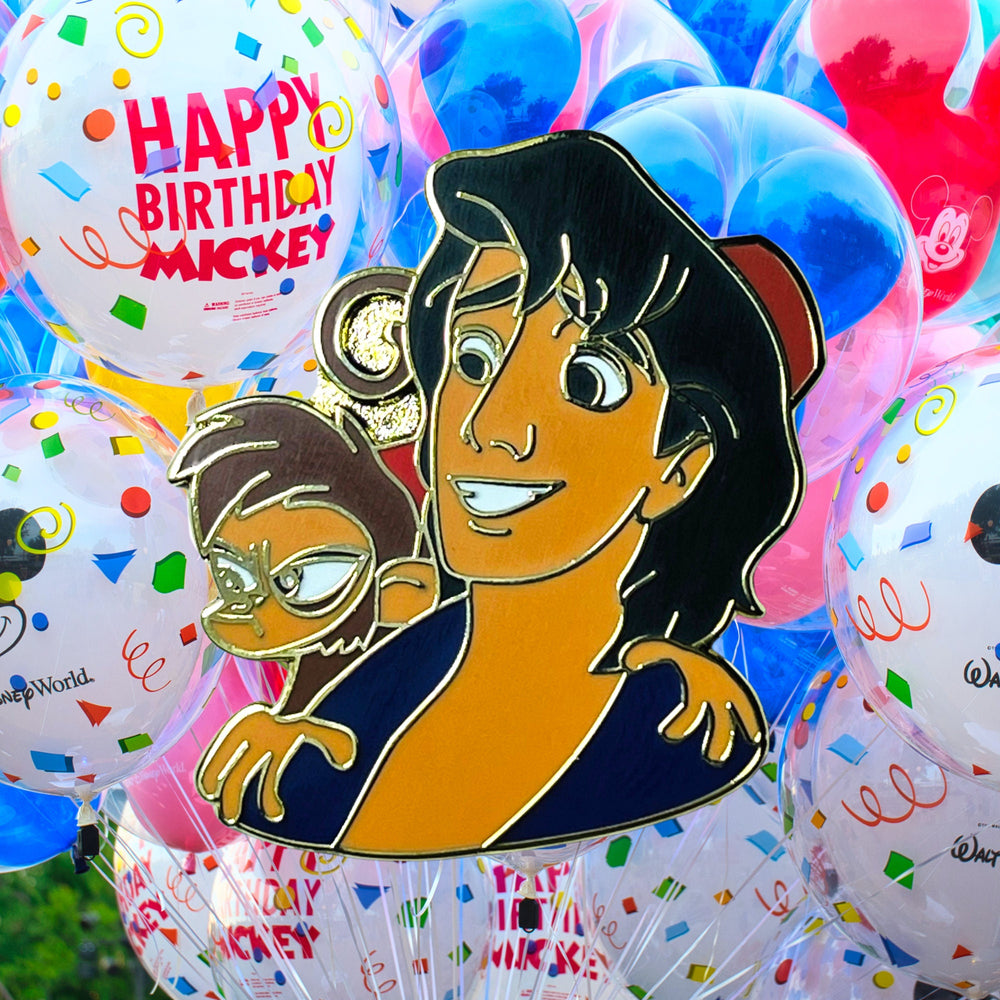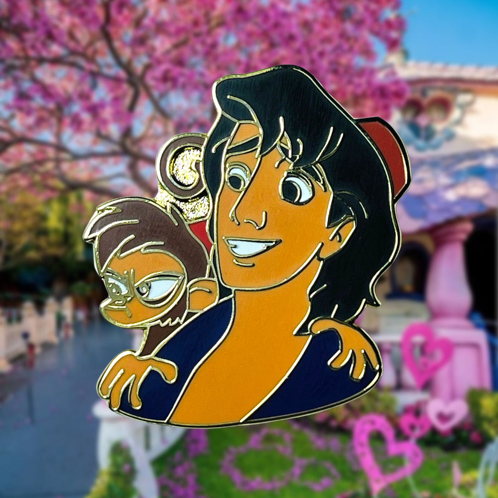 Detrás de cada gran héroe hay un compañero fiel, y la presencia de Abu es un ejemplo brillante de lealtad inquebrantable y compañerismo entusiasta. Este pin captura esa dinámica a la perfección, inmortalizando las aventuras del dúo en un recuerdo tangible que rebosa personalidad y encanto. Es un símbolo de la magia que surge cuando los corazones se unen, recordándonos a todos que, sin importar adónde nos lleve la vida, tener un amigo a tu lado hace que cada momento sea mágico.
