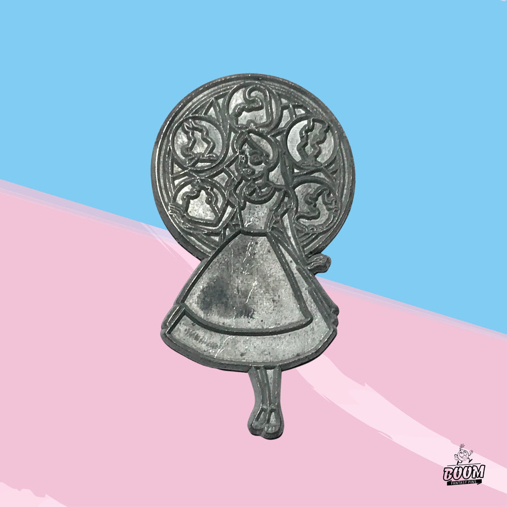 Cada detalle de este pin está meticulosamente diseñado para reflejar el encanto etéreo de la propia Alicia. Envuelto en suaves tonos azules y blancos que evocan su icónico atuendo, el pin refleja su delicada curiosidad y su gracia atemporal. La obra de arte canaliza la energía onírica de los surrealistas habitantes y paisajes del País de las Maravillas, evocando la inocencia encantada de una persecución de cuento de hadas que trasciende el tiempo y el espacio.