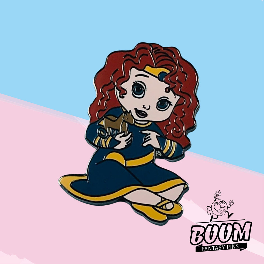 En este mágico escenario, Boom Fantasy te trae un poco de esa magia: un pin coleccionable que plasma el espíritu de Bebé Mérida en vibrantes colores y arte. Cada pincelada captura su cabello ardiente, su mirada decidida y su arco sereno, invitándote a llevar su legado de valentía adondequiera que te lleven tus aventuras.