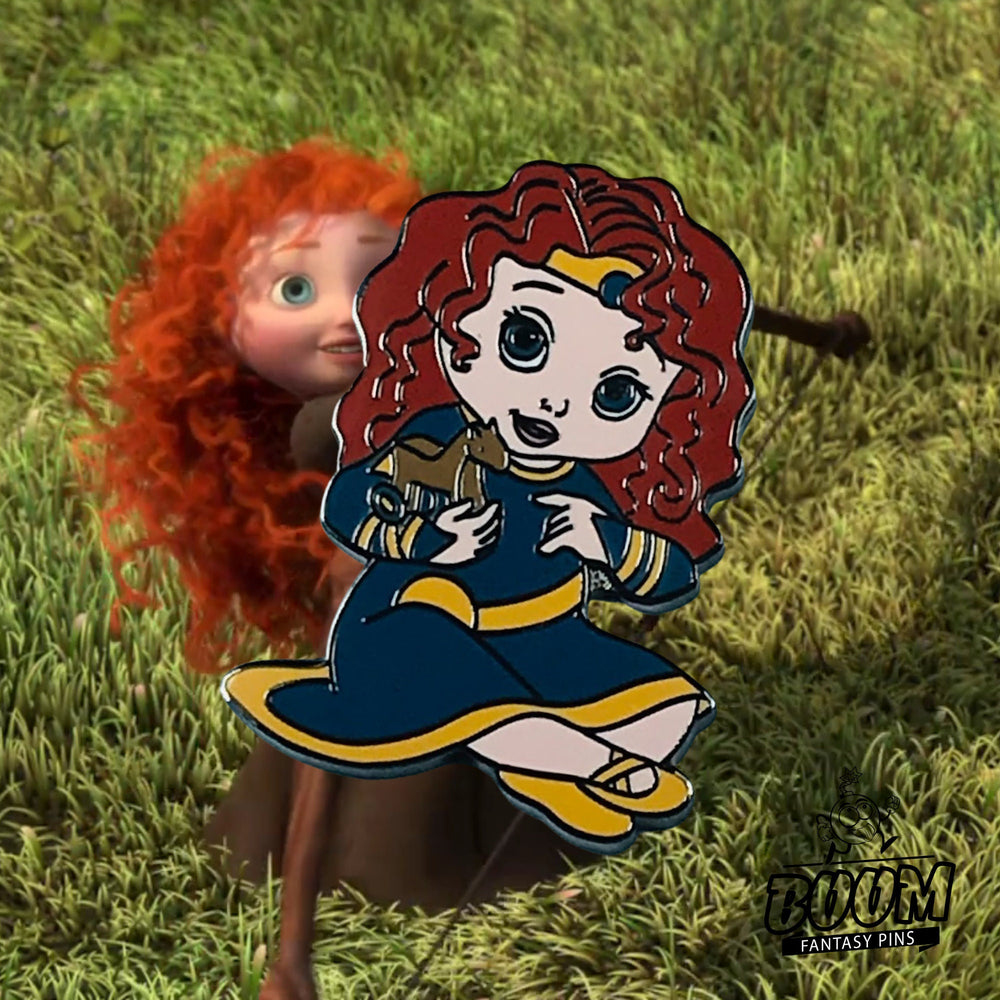Lleva el espíritu de la Bebé Mérida a dondequiera que vayas, no solo como un accesorio, sino como un faro de valentía inquebrantable y curiosidad sin límites. Deja que este pin te recuerde que la valentía no es solo para los poderosos, sino que vive en cada corazón que se atreve a soñar y desafiar el camino que se les presenta.