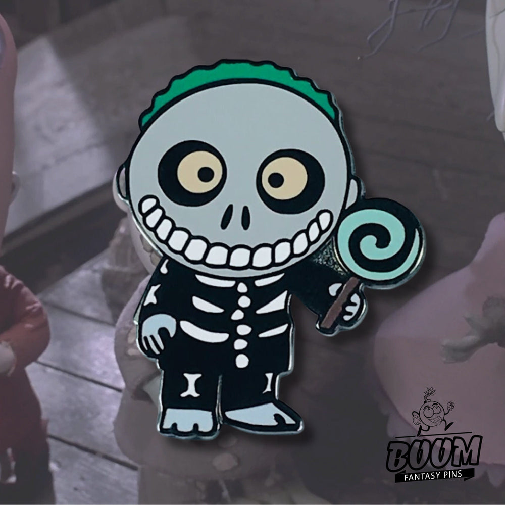 Admira este tesoro artesanal de Boom Fantasy Pins, un homenaje al encanto atemporal de Halloween Town y al espíritu juguetón de uno de sus bromistas más queridos. Llévalo contigo como un faro de fantasía y calidez, una celebración diaria de la magia que reside en cada sombra y la alegría que brota del alma de la travesura.