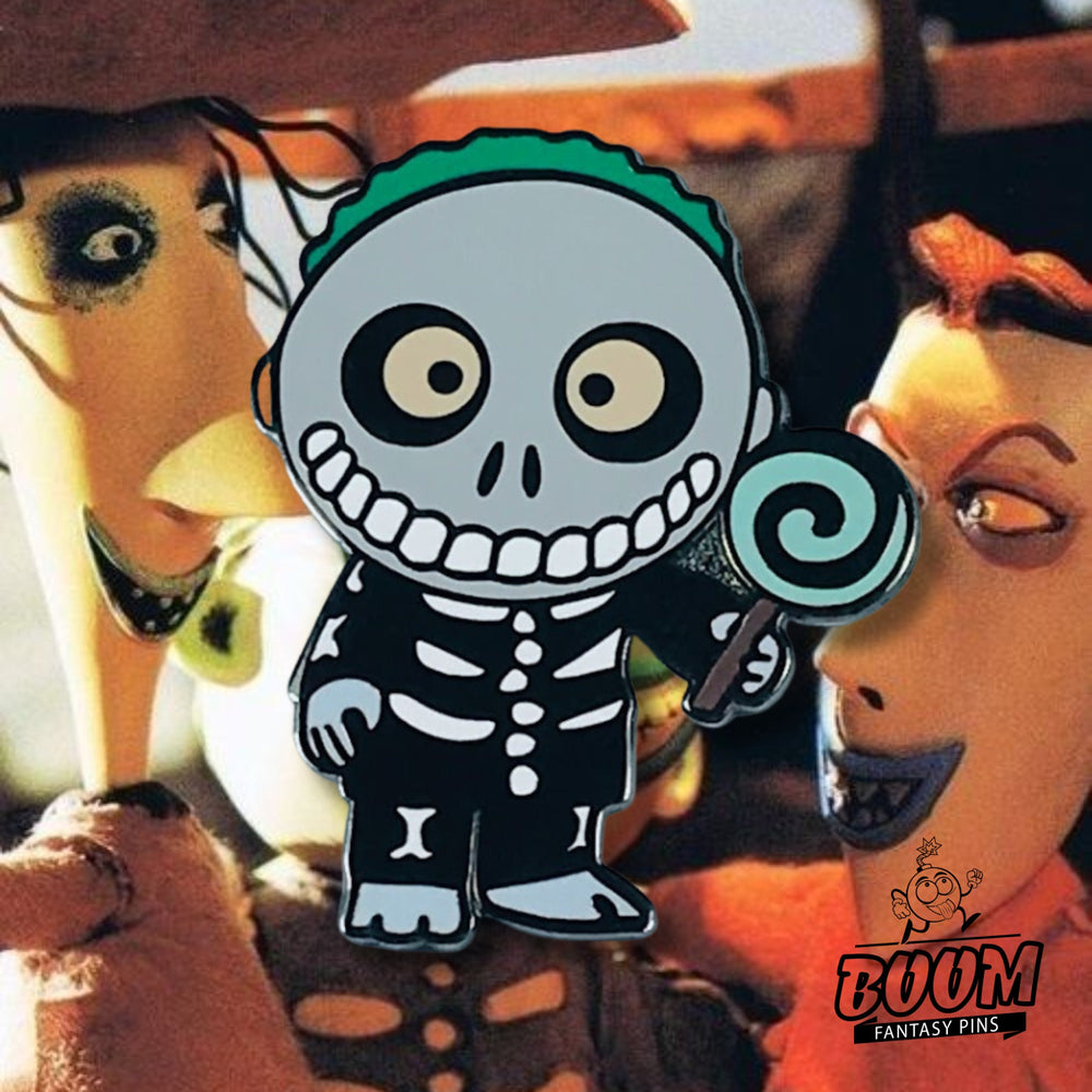Celebra el vibrante espíritu de Barrel, la esencia de la alegre rebelión de Halloween Town y el encanto atemporal de una película que sigue cautivando corazones de generaciones anteriores. Con este pin, el encanto de la arpillera, los botones y las travesuras siempre está a tu alcance, listo para despertar conversaciones, sonrisas y nostalgia dondequiera que vayas.