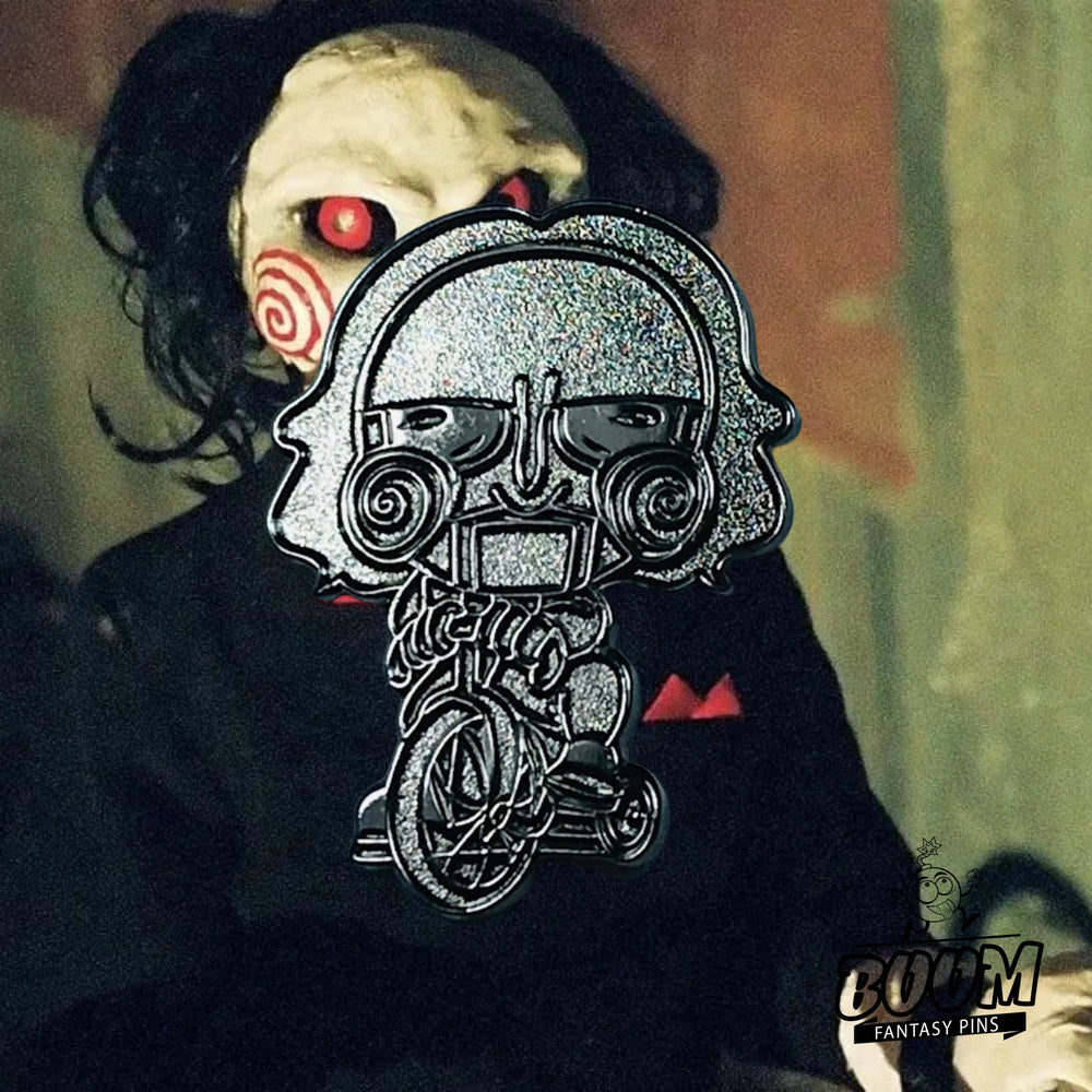 Sumérgete en la atmósfera de terror y anticipación que rodea cada aparición de Billy. El pin captura el silencio escalofriante antes del inicio del juego, sumergiendo a los fans en la tensión de los puzles de vida o muerte que definen la experiencia de Saw .