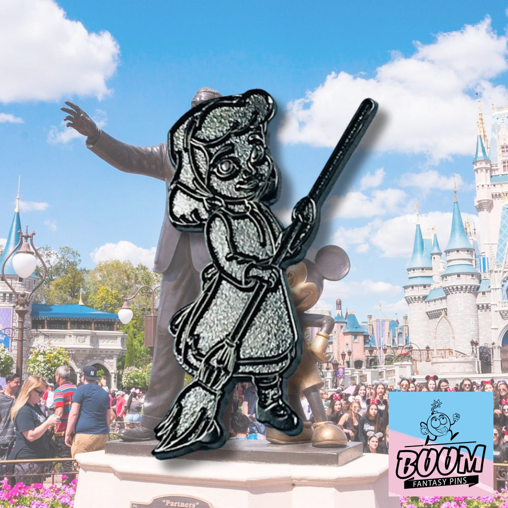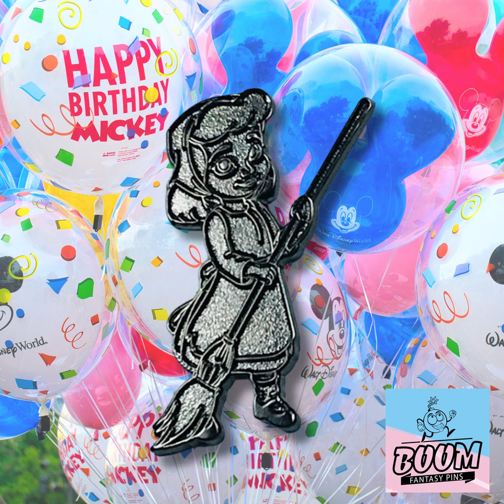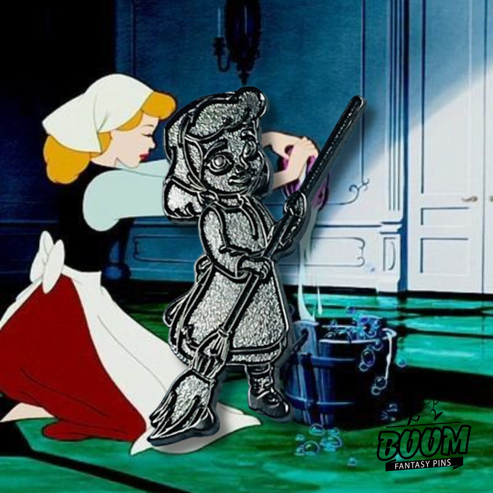 Descubre el proceso creativo tras el diseño del pin, donde cada color y detalle tiene un propósito. Desde las sutiles sombras de su vestido hasta la firmeza de su escoba, cada elemento está inspirado en escenas icónicas y la profundidad emocional de la historia de Cenicienta. Esta sección celebra el arte que eleva el pin más allá de la mercancía: una reverencia pintada a mano a un personaje que encarna la perseverancia, la gracia y la transformación.