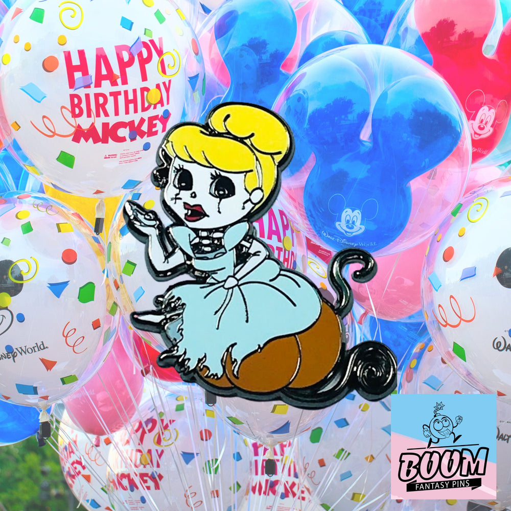 - Elegancia de no-muerta: la transformación de Cenicienta en una princesa zombi combina una belleza inquietante con una gracia clásica, lo que convierte a este pin en un símbolo convincente de fuerza más allá de la mortalidad y un encanto atemporal.
