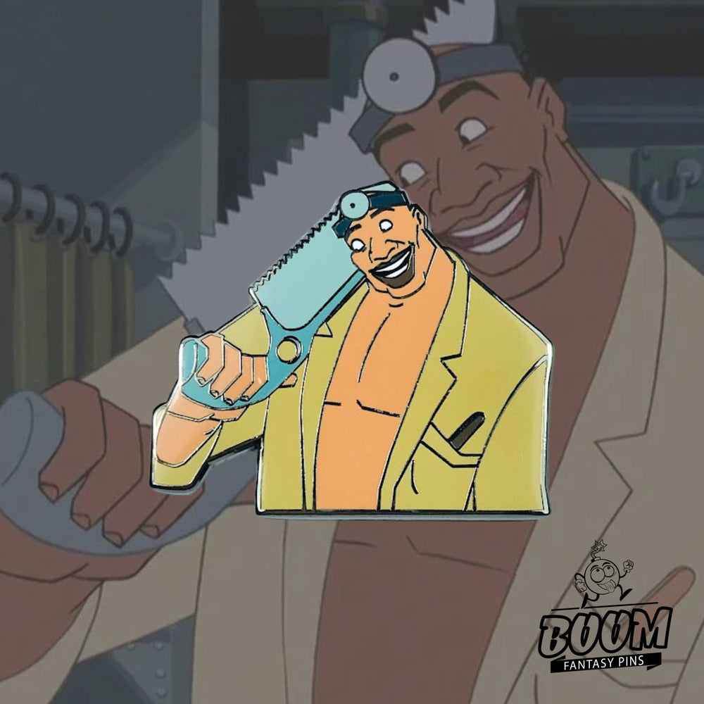 Explora la meticulosa artesanía que da vida al Dr. Joshua Sweet en este pin. Cada pincelada y elección de color rinde homenaje a la estética única de la película: una fusión de aventura retro y maravilla futurista, capturando la esencia de un personaje que combina practicidad y robustez con una empatía sincera.