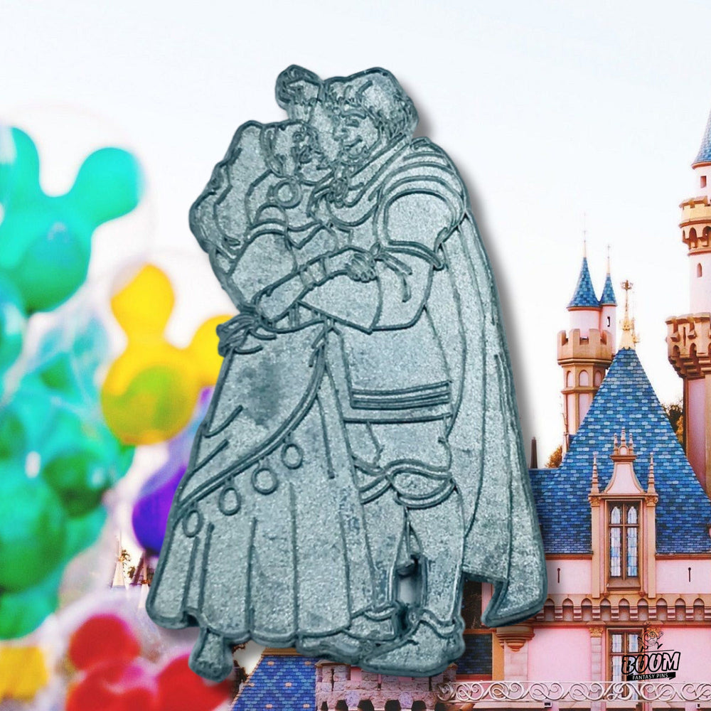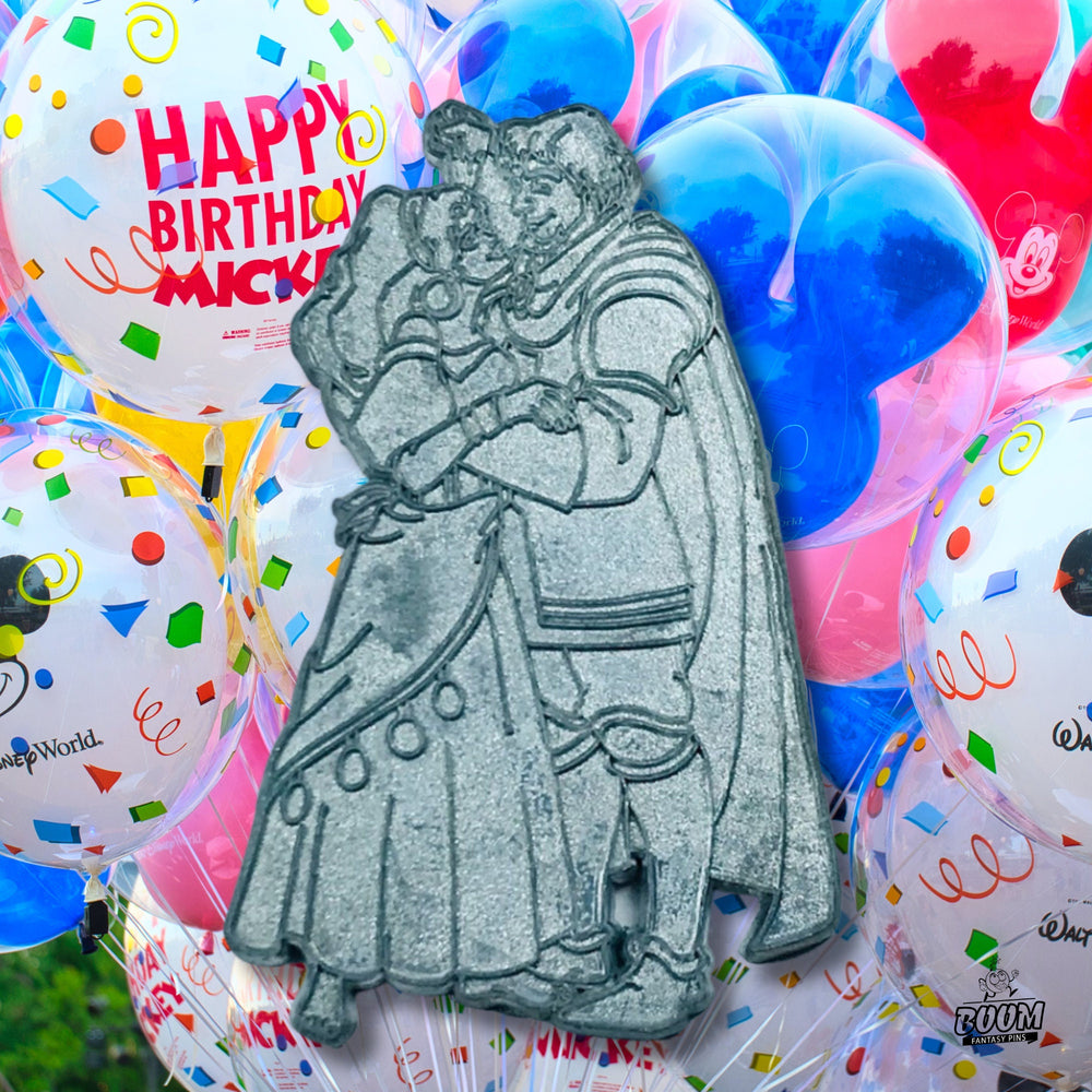 Imagina las ondulantes faldas de Esmeralda, saturadas de ricos rojos y púrpuras, fluyendo como el latido de la cultura romaní. Siente la postura protectora de Febo, firme en su búsqueda de justicia, con su uniforme como símbolo de la valentía que desafía la crueldad. Desde las susurradas oraciones del santuario que resuenan bajo los arcos de la catedral hasta la electrizante persecución por las calles adoquinadas, el pin encapsula el alma cinematográfica de esta legendaria historia.