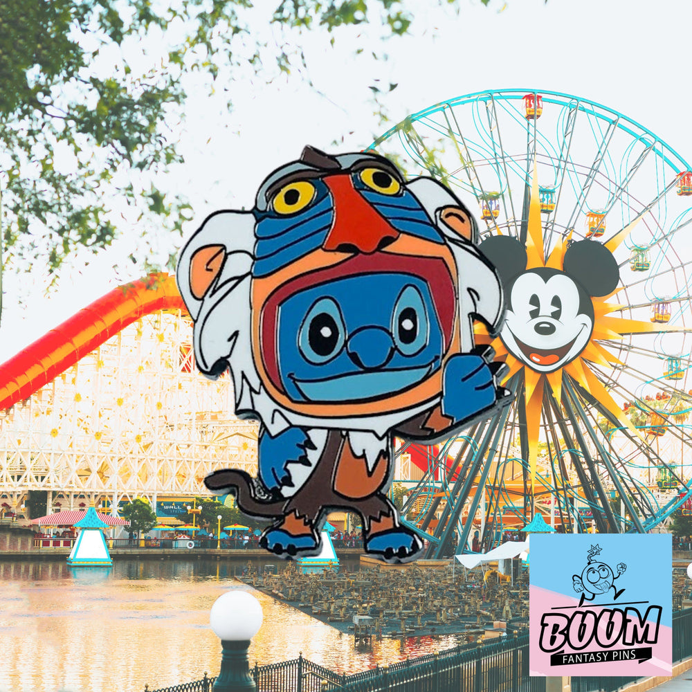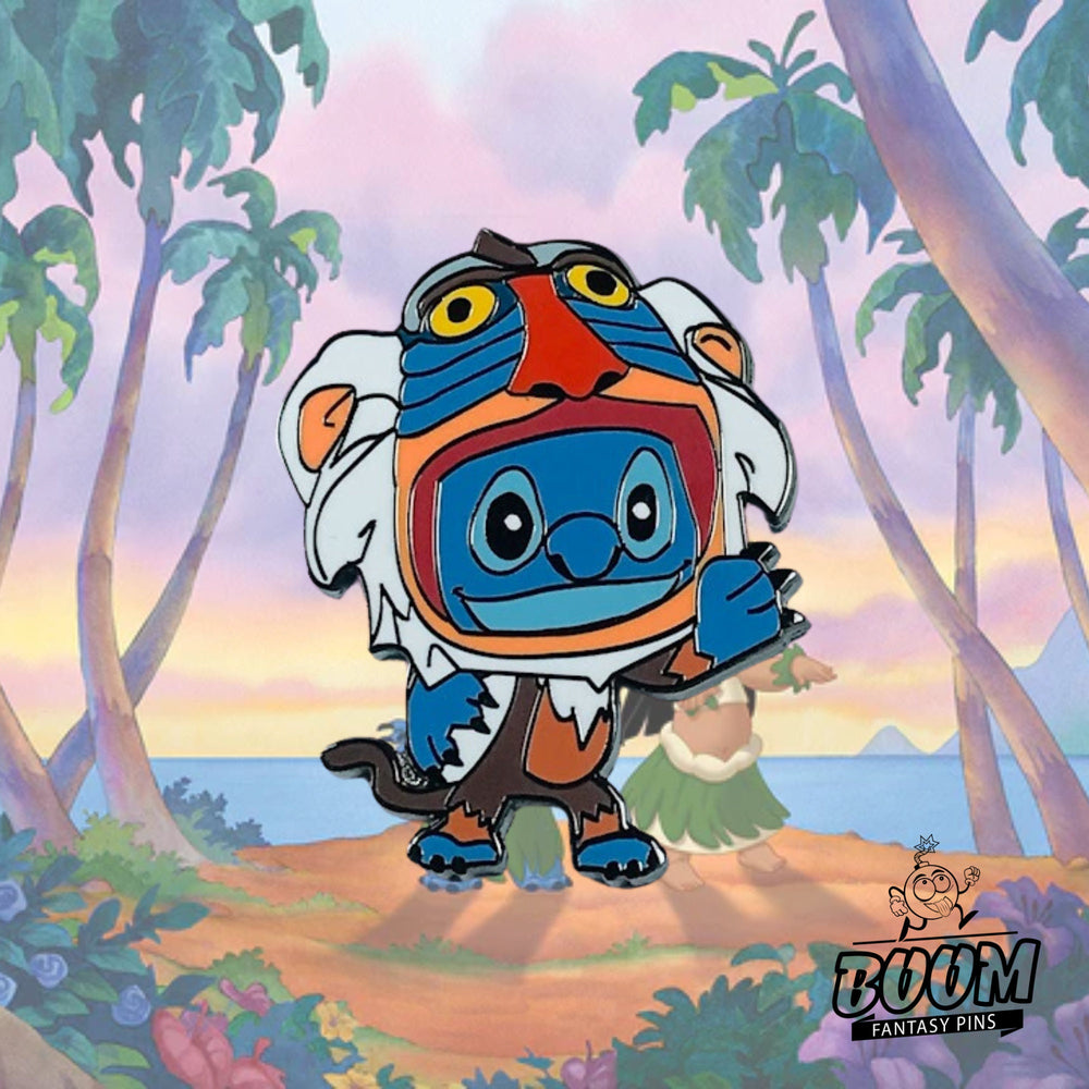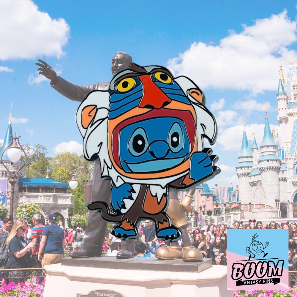 🎬 Entra en el encantador mundo donde la travesura cósmica se encuentra con la antigua sabiduría isleña, un reino donde el Experimento 626, mejor conocido como Stitch, se transforma ante tus ojos en el sabio y caprichoso Rafiki. Imagina el sol salpicando las hojas de palma de una brisa hawaiana, el aroma de la plumeria mezclándose con el aire salado del mar, mientras este juguetón extraterrestre azul adopta la personalidad de sabio del amado chamán babuino. Este pin no es simplemente un accesorio, sino un portal a una historia que entrelaza el espíritu caótico de un experimento intergaláctico con los profundos temas de ohana , los lazos inquebrantables de la familia y la pertenencia. 🌺 Desde su primer aterrizaje forzoso en las costas de la Tierra hasta el viaje de corazón y transformación que siguió, la historia de Stitch es una vívida sinfonía de risas, crecimiento y espíritu aloha que resuena a través de galaxias y generaciones.