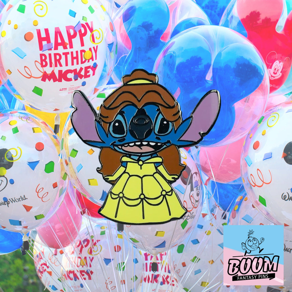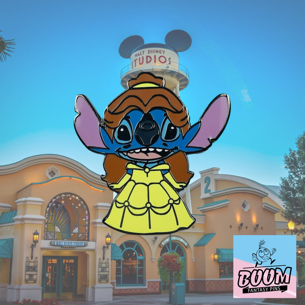 Ahora, imagina a Stitch luciendo el resplandeciente vestido de gala amarillo de Bella, fusionando su juguetón caos con la elegante elegancia de ella en un cruce que conecta galaxias y cuentos de hadas. Esta fusión única evoca la magia de dos mundos en colisión: el encanto agreste de un experimento cósmico y la elegancia atemporal de una heroína clásica de cuento de hadas. El Pin – Experimento 626 de Lilo y Stitch – Disney Fantasy | Stitch como Bella, regalo coleccionable para entusiastas de la animación, captura este momento encantador con un arte vibrante y una profunda emoción.