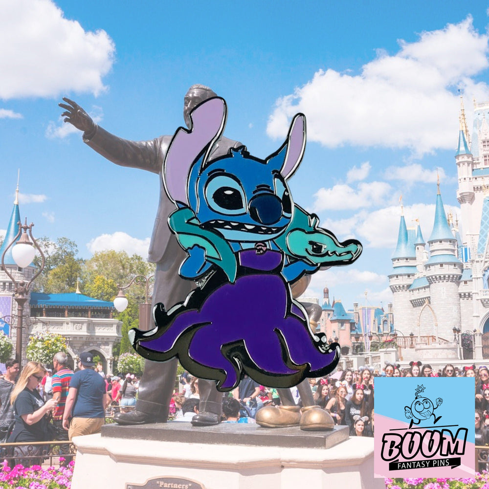 Celebra la rebeldía juguetona que encarna Stitch, ahora amplificada por el toque teatral de Ursula: una combinación que deleita la vista y conmueve el alma. Este pin te invita a llevar un poco de esa magia dondequiera que vayas, un símbolo de valentía para aceptar tu identidad única y un recordatorio de que incluso las alianzas más inesperadas pueden crear belleza. Ya sea colgado en tu bolso, en las llaves o exhibido con orgullo en tu colección, es un homenaje al caos alegre y al profundo amor que representa Stitch.