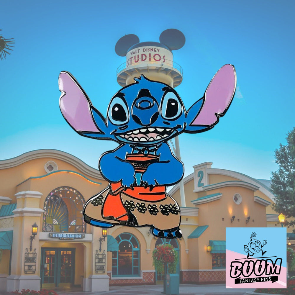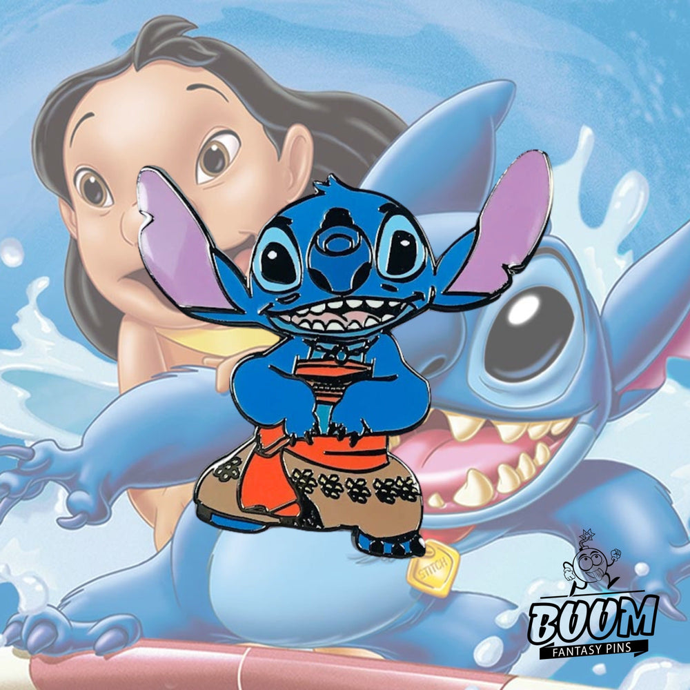 Coleccionistas y admiradores se deleitarán con los sutiles matices: el brillo en los ojos de Stitch, los detallados patrones de su traje isleño y la pose dinámica que sugiere movimiento y energía. Este pin es una celebración de la imaginación hecha tangible, un homenaje a las historias que nos inspiran a soñar y explorar.