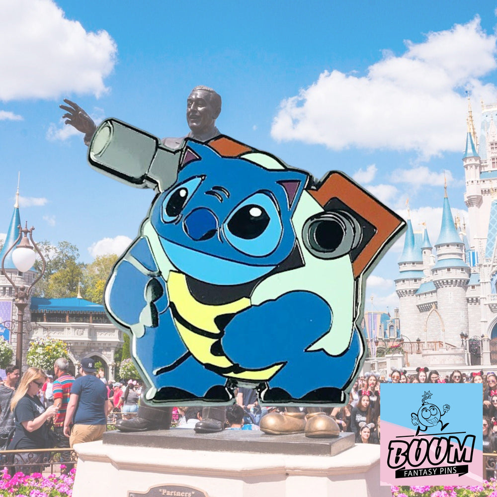 Ahora, imagina a este entrañable villano azul reimaginado con la imponente presencia de Blastoise, el monstruo de tipo Agua del universo Pokémon. Este pin crossover combina la energía juguetona de Stitch con la fuerza de Blastoise, creando una obra maestra visual que simboliza el crecimiento, la valentía y el equilibrio dinámico entre el caos y el control. Su audaz postura irradia la férrea determinación que los fans adoran en ambos mundos, creando un look de transformación de batalla final rebosante de intensidad emocional y nostalgia.