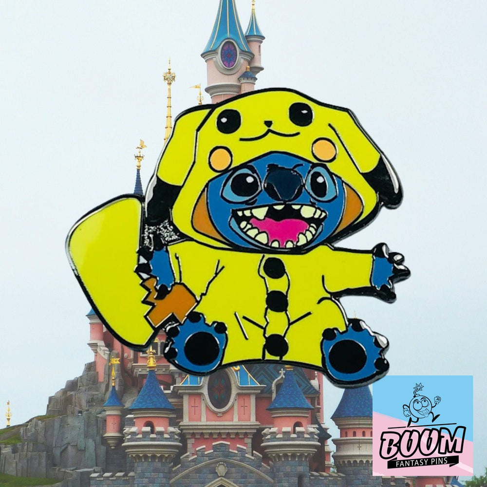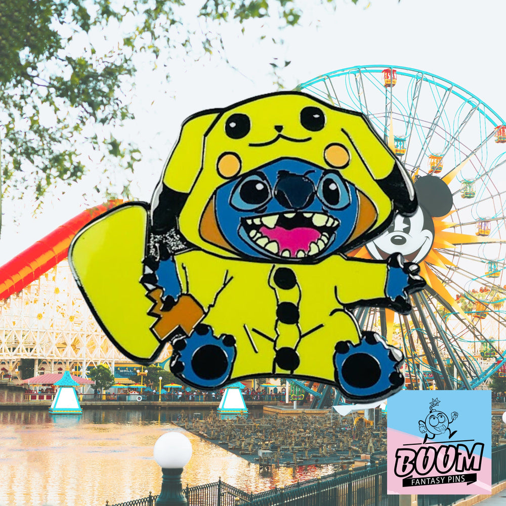 Ahora, imagina esta icónica figura reinventada con un toque vibrante, fusionando la travesura juguetona de Stitch con el carisma amarillo eléctrico de un favorito del anime: el inconfundible Pikachu. Este crossover es una celebración de fandoms culturales entrelazados, una alegre colisión de mundos que desata una nueva magia. El pin de fusión captura este electrizante momento, donde el espíritu salvaje del extraterrestre azul se une a la energía brillante y el rayo característico del héroe del anime, creando un híbrido tan dinámico como adorable.