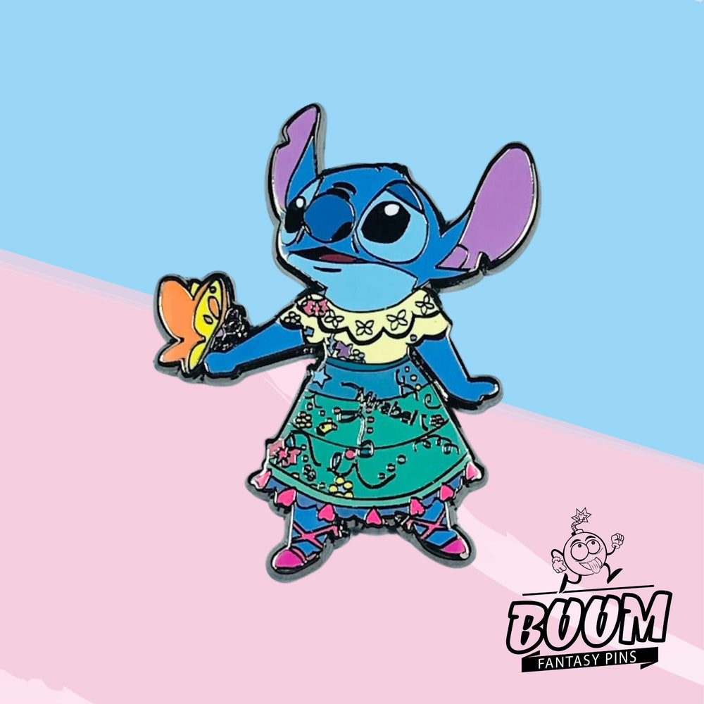 Este pin cuenta la historia del Experimento 626, una criatura nacida de la curiosidad cósmica, que encarna la travesura y una energía desbordante. Sin embargo, bajo esa fachada traviesa se esconde un corazón que anhela pertenecer, un tema que resuena profundamente con la propia historia de autodescubrimiento y aceptación de Maribel. El icónico pelaje azul de Stitch y sus grandes y expresivas orejas se representan con cariño con un toque mágico, evocando los vibrantes tonos y la calidez del mundo encantado de Encanto. Es un homenaje no solo a las aventuras cósmicas de Stitch, sino también al poder universal de la familia, el amor y la aceptación de los dones únicos de cada uno.
