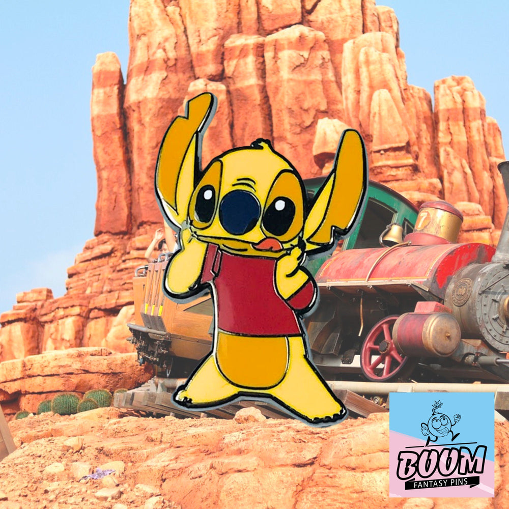 La decisión de combinar a Stitch con la dulce inocencia de Winnie the Pooh añade una dimensión fascinante a este coleccionable. Captura la dualidad de lo salvaje y lo cálido, la travesura y la comodidad, la rebeldía y la pertenencia. Invita a los fans a explorar las facetas más tiernas del personaje de Stitch, recordándonos que bajo cada exterior juguetón se esconde un corazón capaz de un amor profundo. Este pin es una celebración de la complejidad: el niño salvaje que aprende a cuidar, el extraterrestre que se convierte en miembro de la familia, el caos que encuentra la calma.